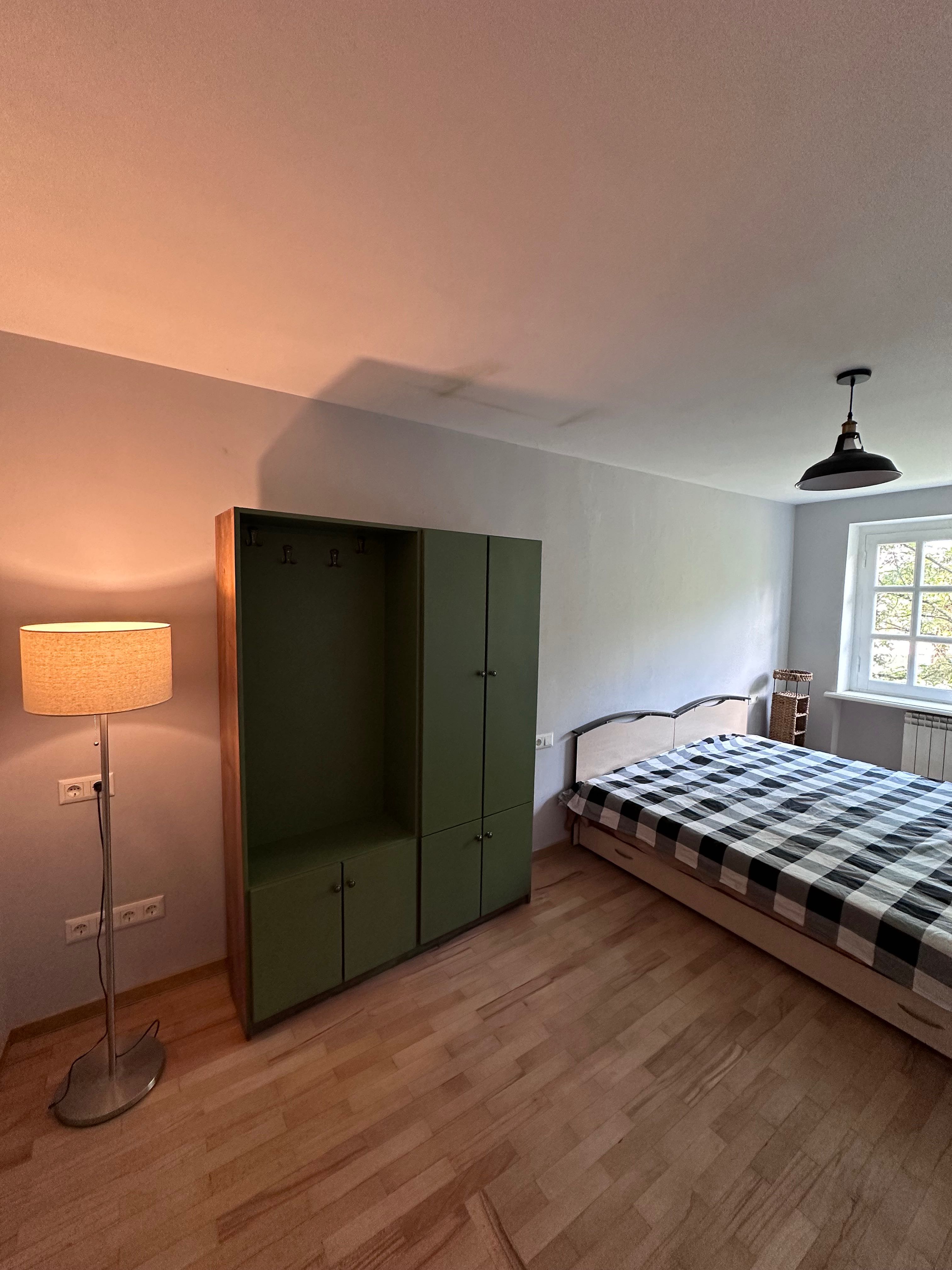 1 ოთახია საძინებელისთვის განკუთვნილი ეხლა ბინაში, მეორე მისაღებად არის გაკეთებული, მაგრამ შესაძლებელია მისაღების ოთახიც გადაკეთდეს საძინებლად და დავამატოთ საწოლი,