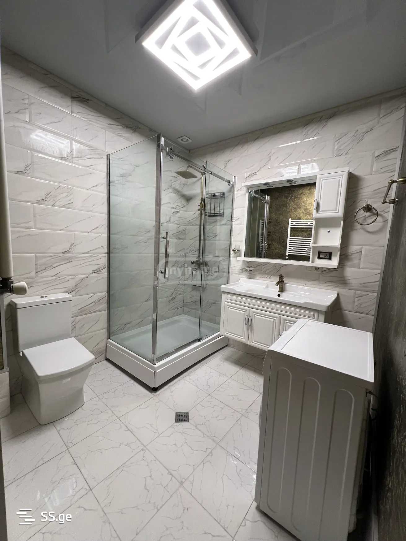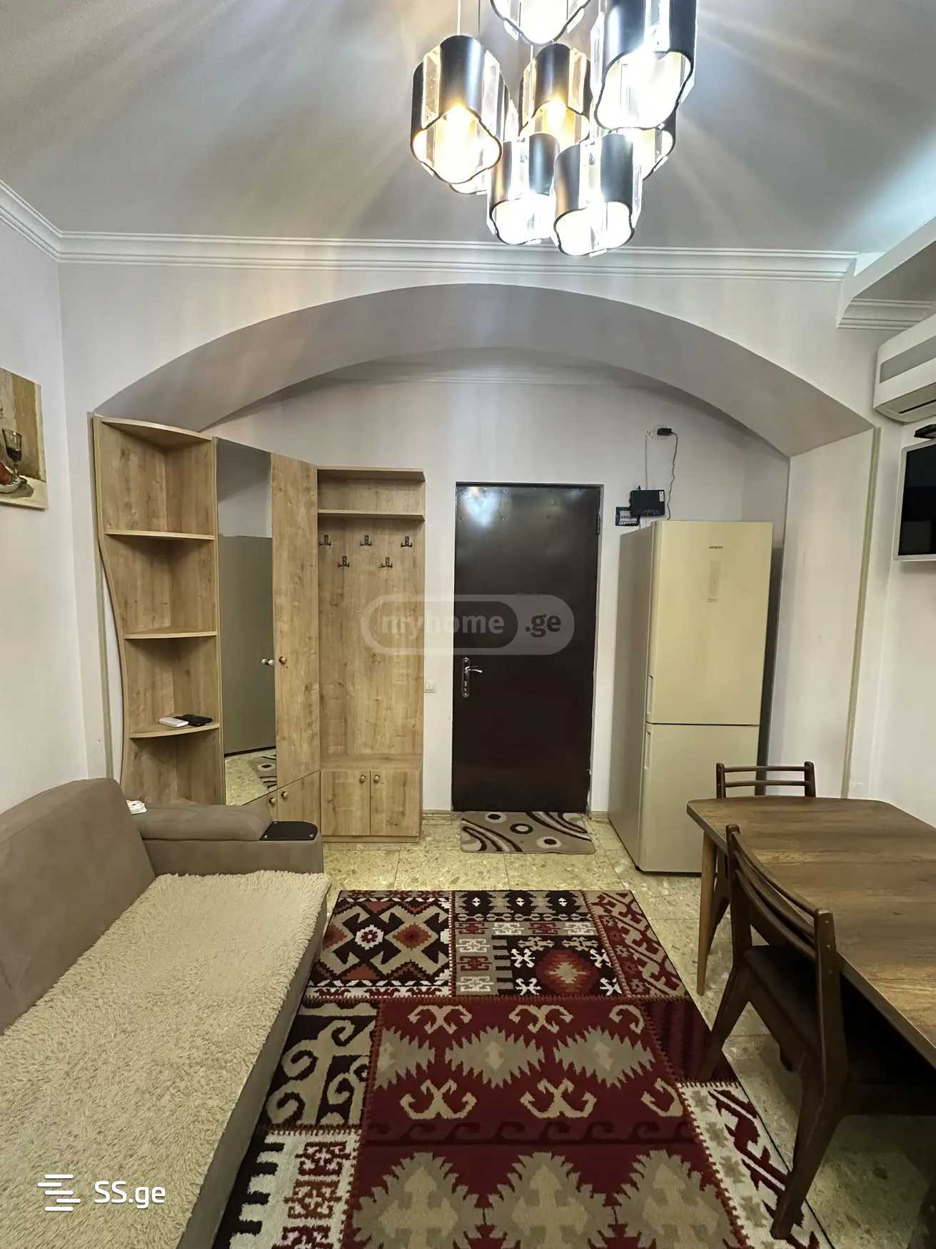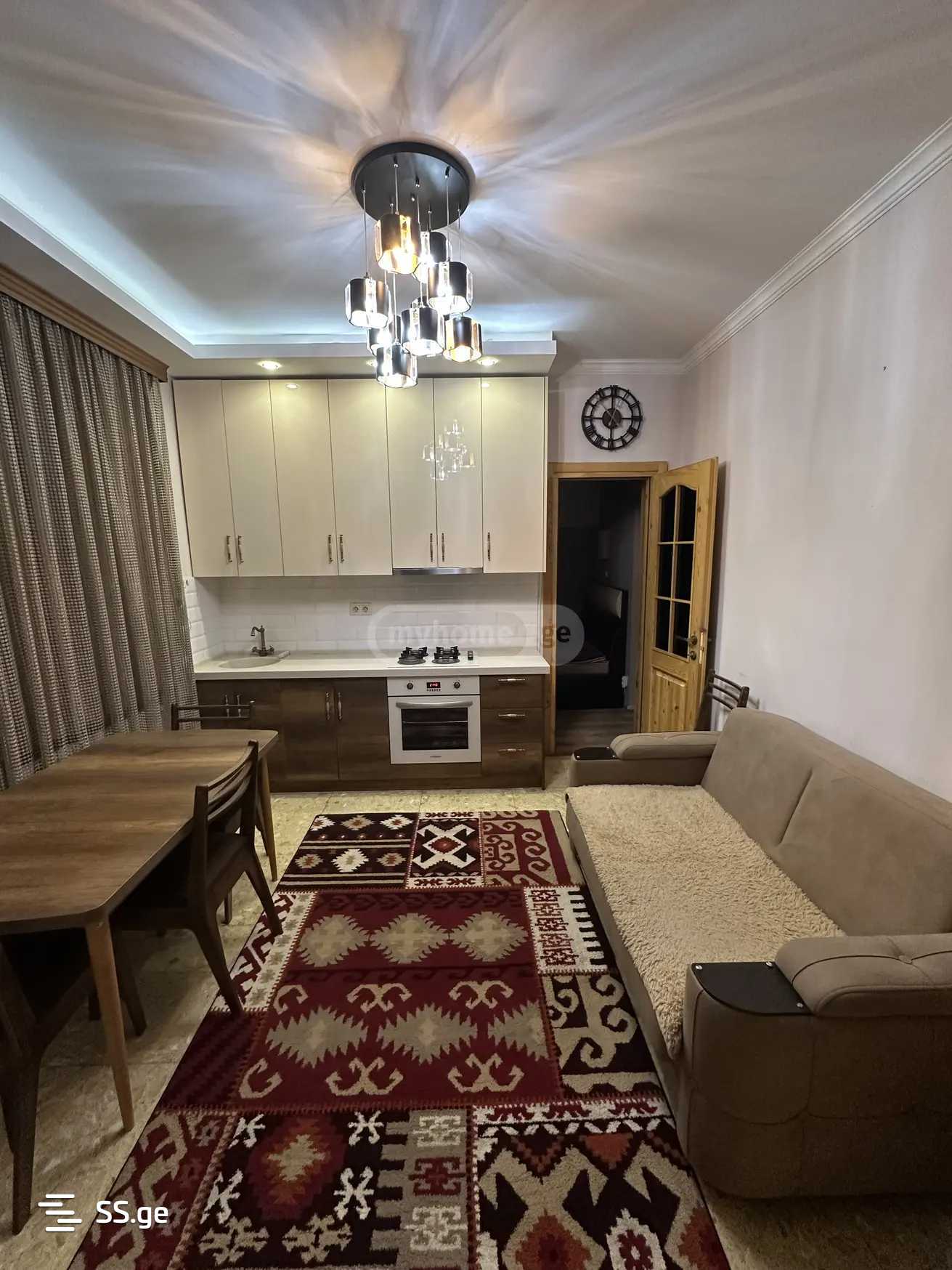 სრული ფართობი 50კვ.მ.. ოთხ სართულიანის პირველი სართული. ბინაში არის ერთი იზოლირებული საძინებელი, ცენტრალური გათბობა, კონდიციონერი, გაზქურა, სარეცხის მანქანა, ტელევიზორი, მაცივარი, გასაშლელი დივანი, უუუამრავი სათავსო, და სხვა ყველა საჭირო ავეჯი/ტექნიკა და მახასიათებელი. დიდი აივანი (12კვ.მ.), რკინის კარები და ფანჯრებზე რკინის გისოსები.