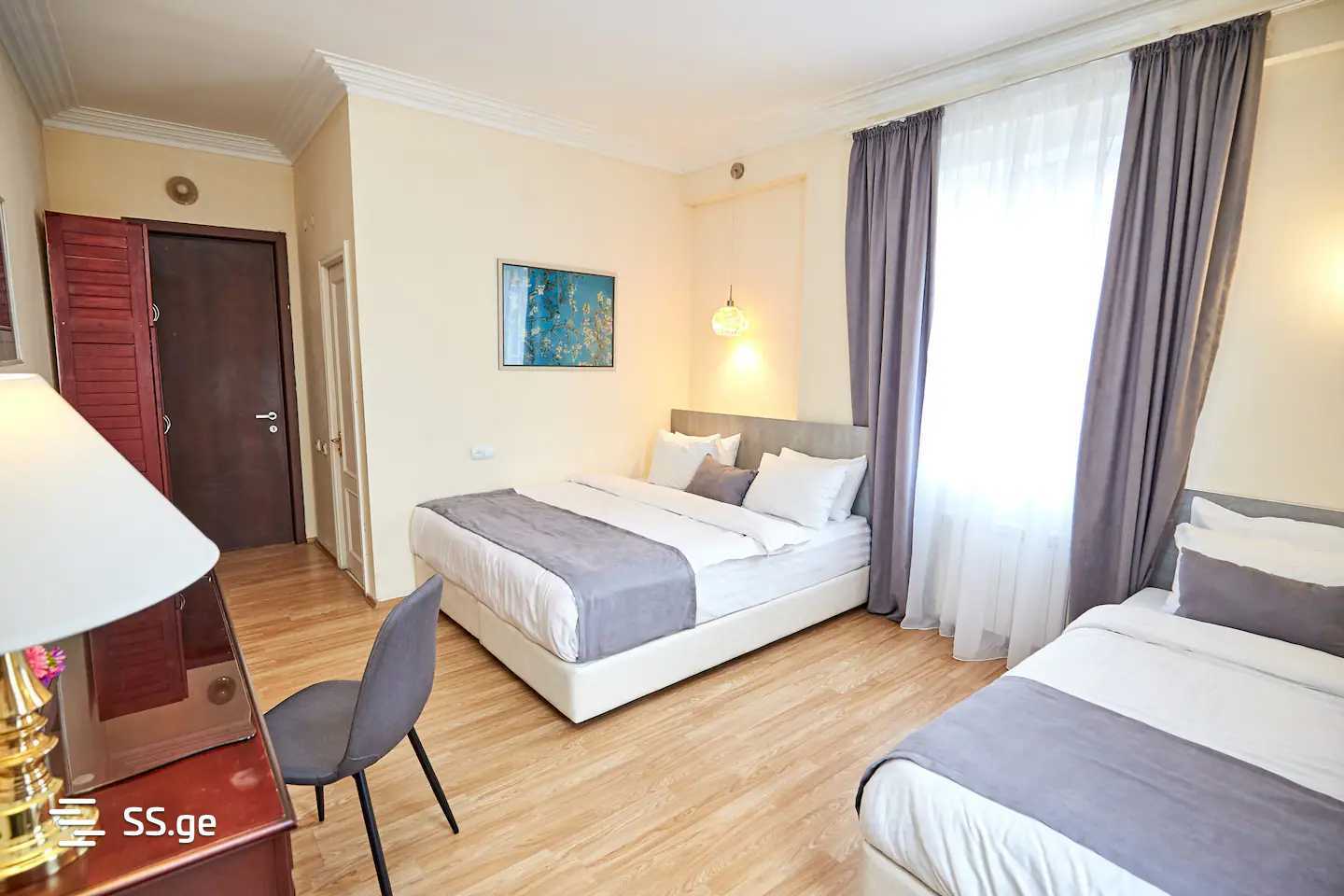 1 ოთახიანი ბინა ცალკე სამზარეულოთი, მდებარეობს ქალაქის ცენტრში, პრესტიჟულ რაიონში, ვერაზე, ფიქრის გორაზე, 24 საათიანი კონსიუერჟით და სერვისებით. ბინა არის კეთილმოწყობილი, ავეჯით, აივნით და დიდი ვერანდით ქალაქის ხედით.