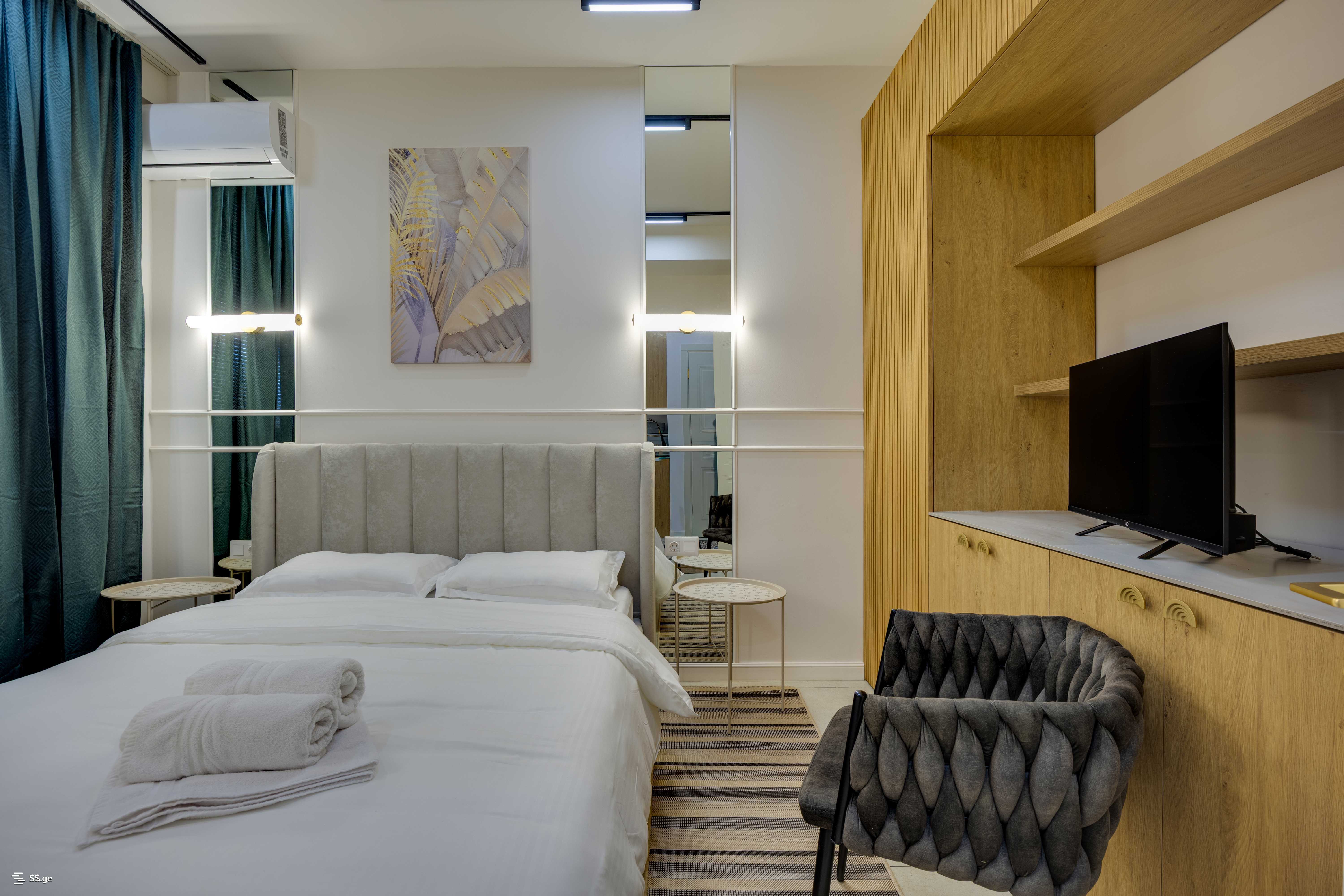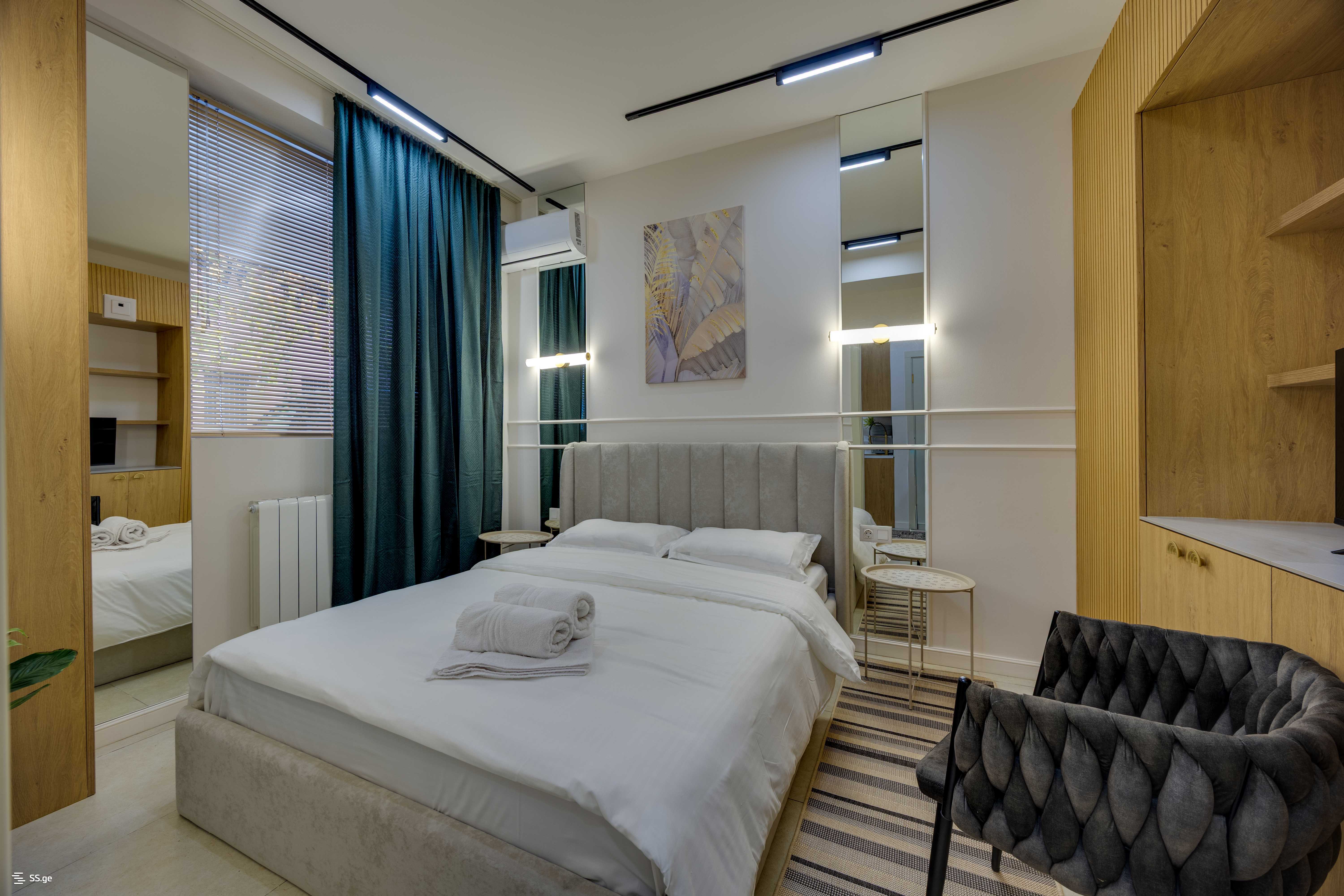 ბინა მდებარეობს სასტუმრო რუმსთან, რუსთველის მეტროდან 5 წუთის გზაზე. ბინა აღჭურვილია ტექნიკით და არის კომფორტული;