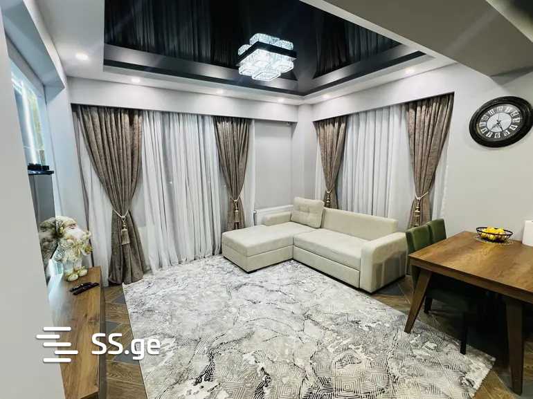 გლდანში ზედ ახმეტელის თეატრთან, საუკეთესო ლოკაციაზე, არქის ახლად აშენებულ კორპუსში კუთხის 3 ოთახიანი პრემიუმ კლასის ბინა 2 საძინებლით და დიდი ვერანდებით (ბინა უცხოვრებელია აბსოლიტურად ყველაფერი არის ბინაში სულ ახალი ავეჯიდან დაწყებული ტექნიკით დამთავრებული). მინიმალური დრო 1 წელი და ქირის პირველსა და ბოლო თვის წინასწარი გადახდით.