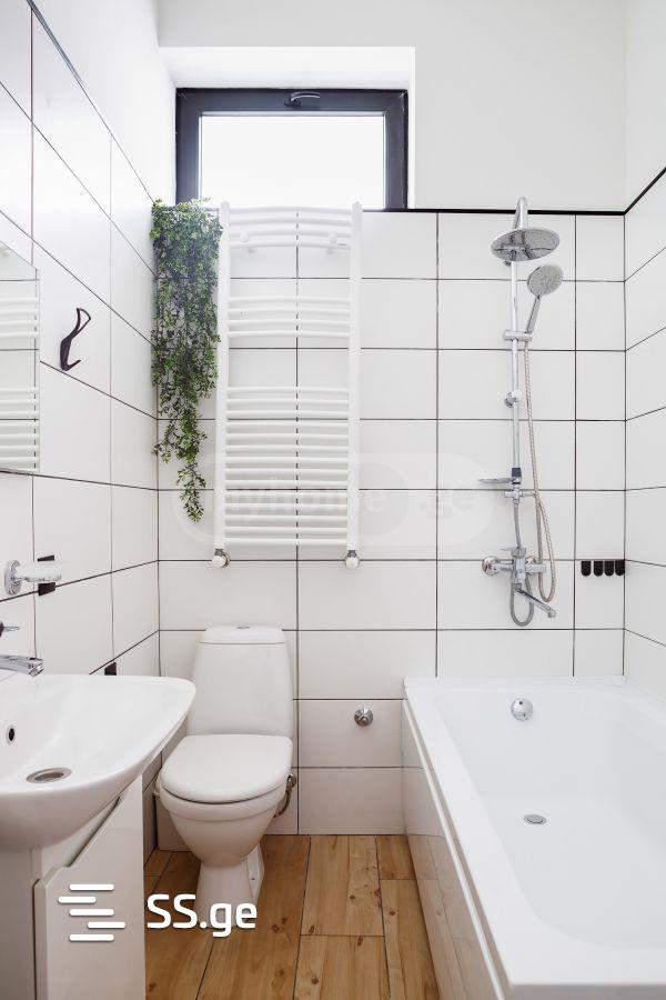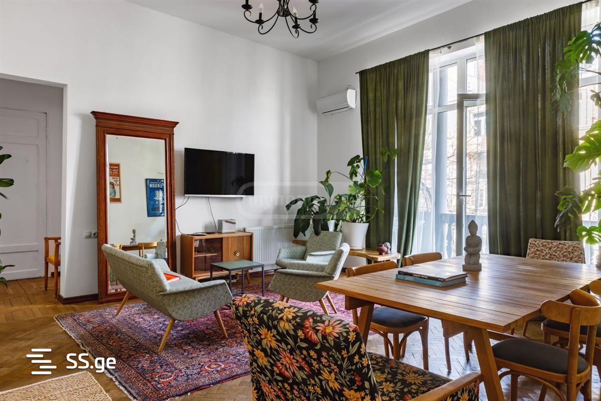 3.80 ჭერის სიმაღლე,ულამაზესი აივნით, ვინტაჟური ავეჯით , სამხრივად გამჭოლი . სველი წერტილით ფანჯრით. სამივე ოთახს აქვს ინდივიდუალური კონდიციონერი . სამზარეულო ჩაშენებული ტექნიკით: ჭურჭლის სარეცხი, ღუმელი,მიკროტალღური და ა.შ.