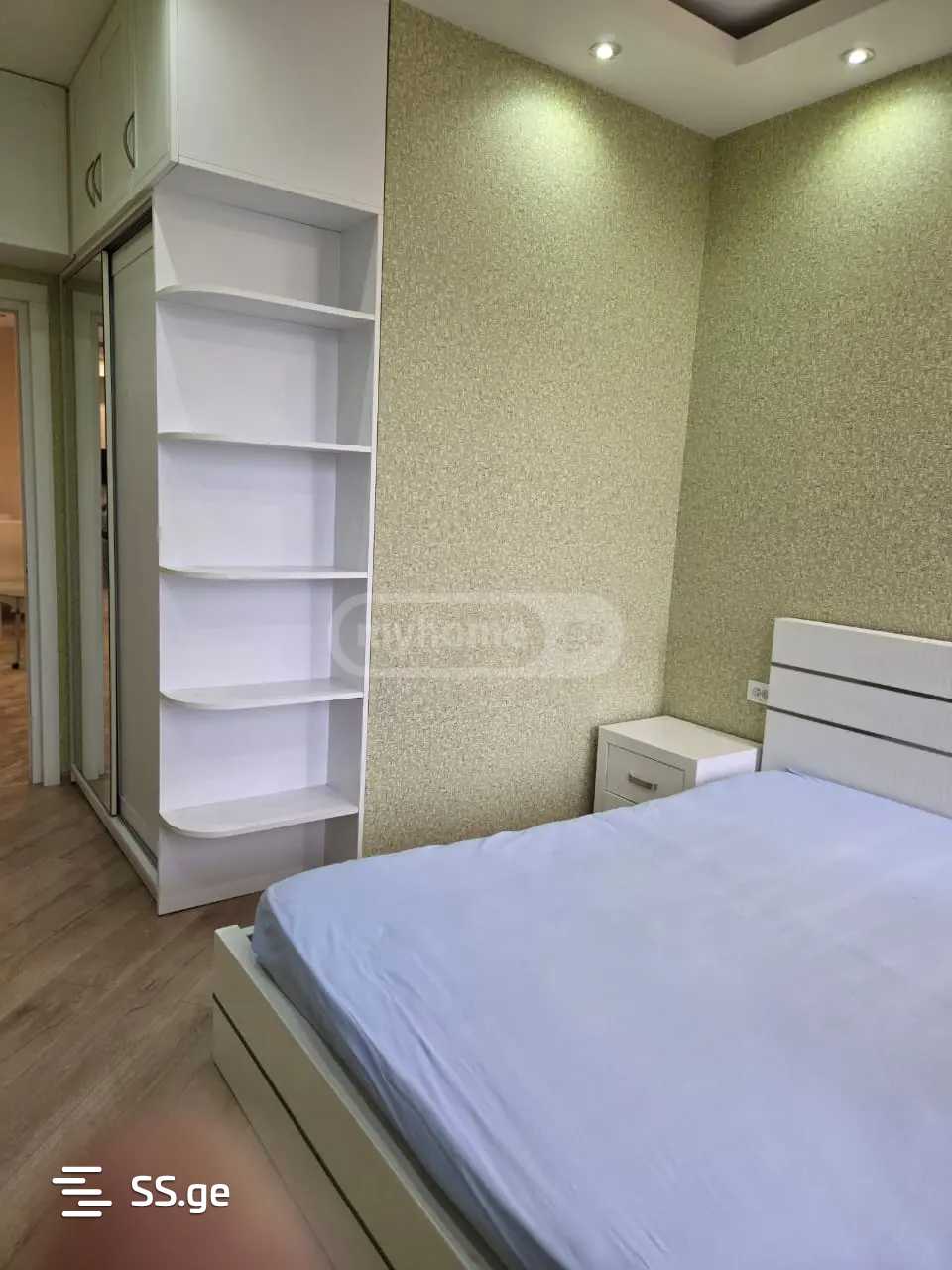 ბინა იდეალურ მდგომარეობაში. ორი საძინებელით დიდი საწოლებით კარადები სარკეებით, ცენტრალური გათბობით , ორი კონდენციონერით და დამაფონით ( ხედვის კამერით) ავტო ფარეხი იზოლირებული კარებით, რომელიც განთავსებულია შენობის ქვეშით. ეზო , სადარბაზოს ტერუტორია და ლიფტები ახჭურვილია ხედვის კამერებით.