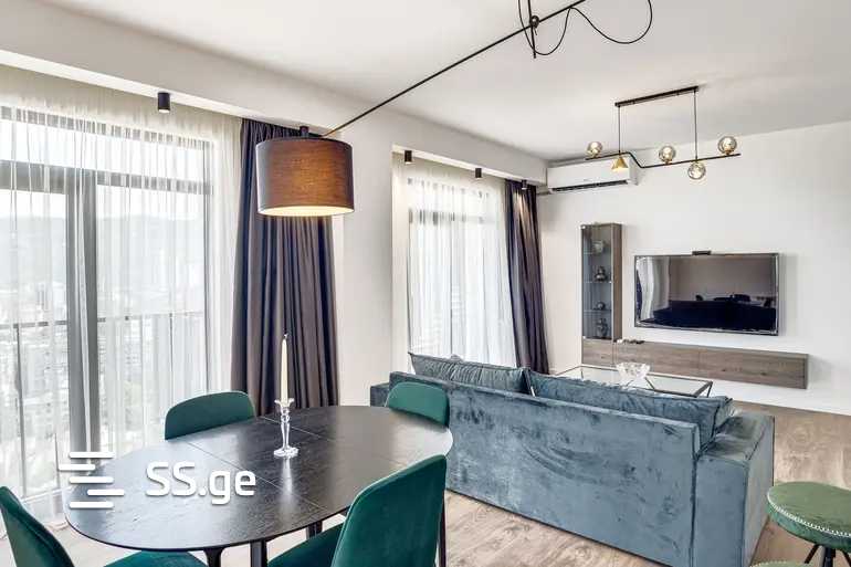ქირავდება 125 მ2, სამ ოთახიანი სრულად აღჭურვილი თანამედროვე ბინა, ევრო სტანდარტების შესაბამისი რემონტით, გამოყებულია ეკოლოგიურად სუფთა სარემონტო მასალა. ბინა მდებარეობს საბურთალოზე, დელისის მეტროსთან, ლისის ტბასთან და ევროპულ სკოლასთან ახლოს, ორი საძინებლით, ორივე საძინებელს აქვს საკუთარი აივანი. ერთი საძინებელი არის საკუთარი საგარდირობეთი და აბაზანით. ორი სველი წერტილით. ორი აივნით, ულამაზესი ხედით მთელ ქალაქზე. სამზარეულოში არის ჩაშენებული ტექნიკა (მაცივარი, ელექტრო ღუმელი, მიკროტალღური ღუმელი, თეფშების სარეცხი მანქანა). ფასში შედის 1 ან 2 ადგილი მიწისქვეშა ავტოფარეხში. ბინა არის ახალაშენებულ კორპუსში. კორპუსს აქვს საკუთარი პარკი.