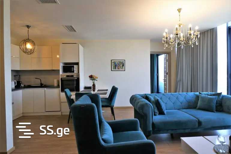 ქირავდება 3 ოთახიანი აპარტამენტი კინგ დავიდის (KING DAVID RESIDENCE) კომპლექსში. 2 საძინებლით, 2 სველი წერტილით. ხედებით თბილისზე და მდინარე მტკვარზე. ბინა აღჭურვილია ყველა საჭირო ინვენტარით. კომლექსში მდებაროებს რესტორანი, ფიტნეს დარბაზი Snap Fitness Premium , ღია და დაუხურული აუზი Snap Pool , სპა ცენტრი, საერთო სამუშაო სივრცე, საკონფერენციო დარბაზები, ქიმწმენდა. კომპლექს ყავს 24/7 დაცვა.