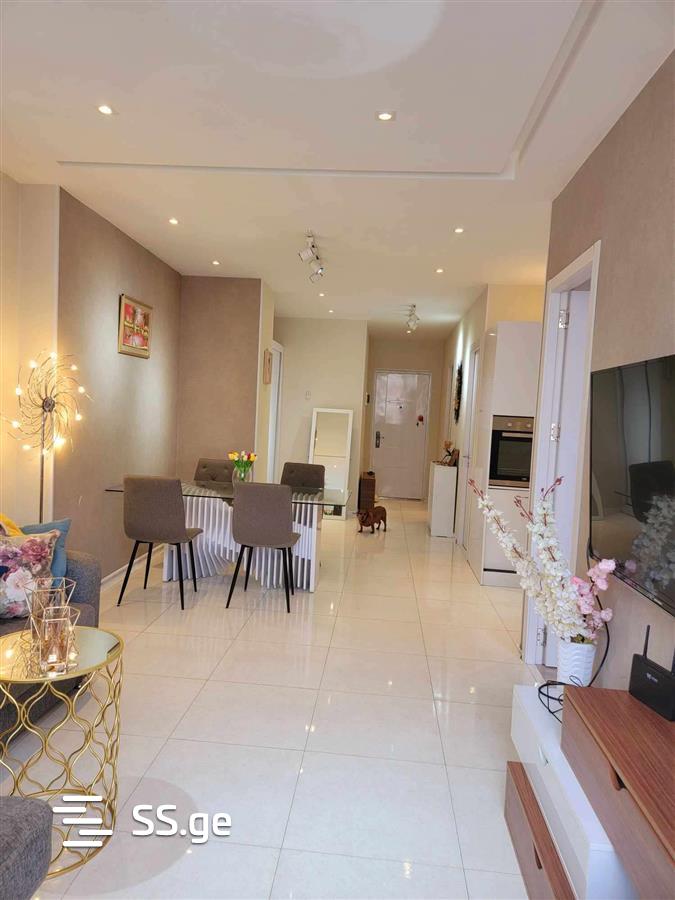 ყველა საჭირო ავეჯით და ტექნიკით ბინაში არის ჭურჭლის სარეცხი მანქანაც