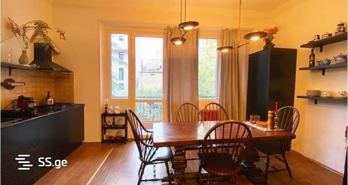 ქირავდება ბინა, ძველ აშენებულ კორპუსში, მეხუთე სართულზე. საცხოვრებელ ფართს აქვს 2 სველი წერტილი, 2 საძინებელი და სტუდიოს ტიპის მისაღები. მდებარეობს კეკელიძის და ბარნოვის ქუჩის კვეთაზე.