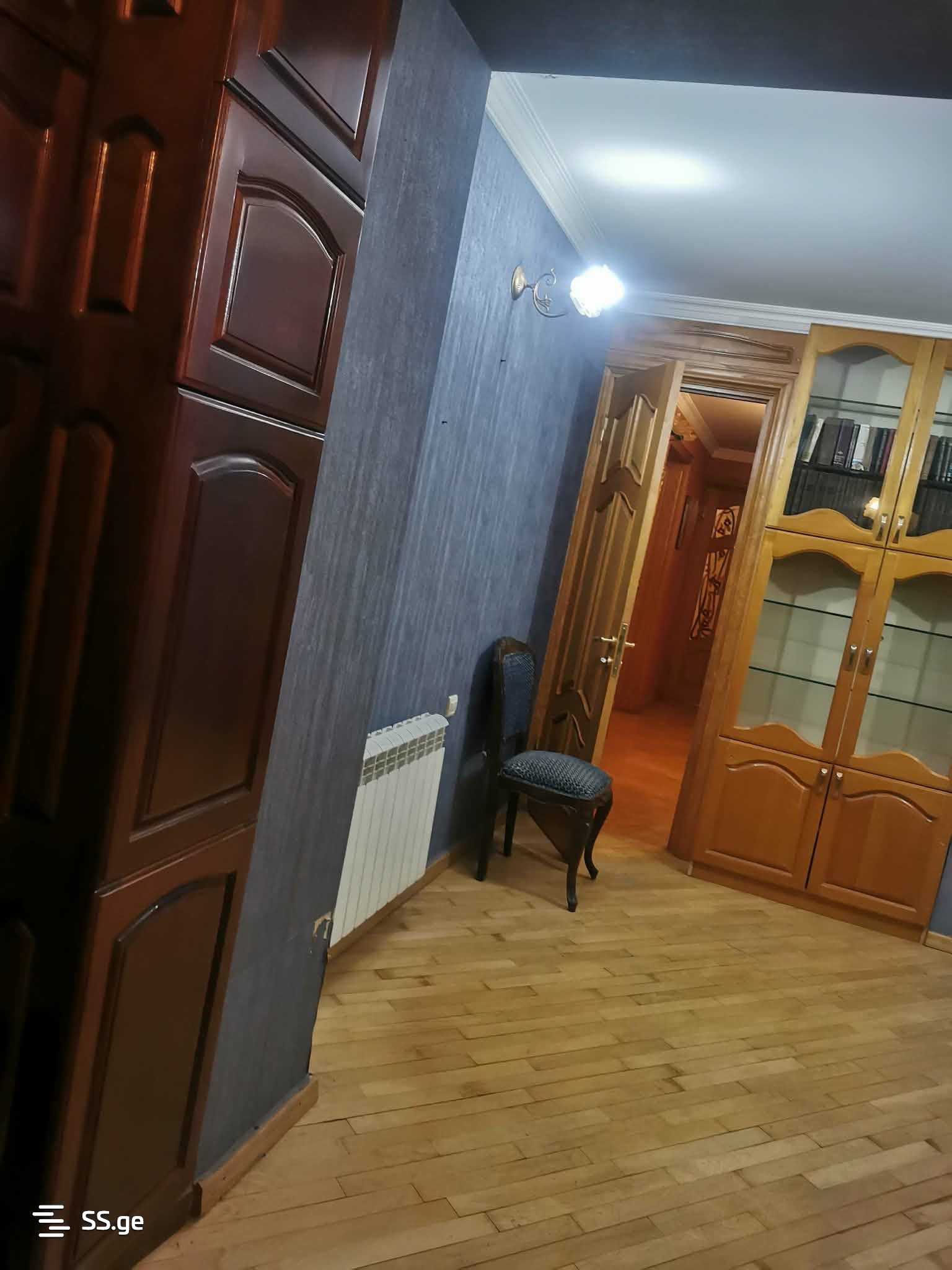 ქირავდება არასტანდარტული პროექტის ბინა ძველაშენებულ კორპუსში, რომელიც მდებარეობს მეცხრე სართულის მერვე სართულზე. ბინის საერთო ფართობი შეადგენს 150 კვ.მ-ს და მოიცავს ოთხ ოთახს, მათ შორის სამ საძინებელს. ბინა უზრუნველყოფილია ყველა საჭირო ინვენტარით- ავეჯითა და ტექნიკით.