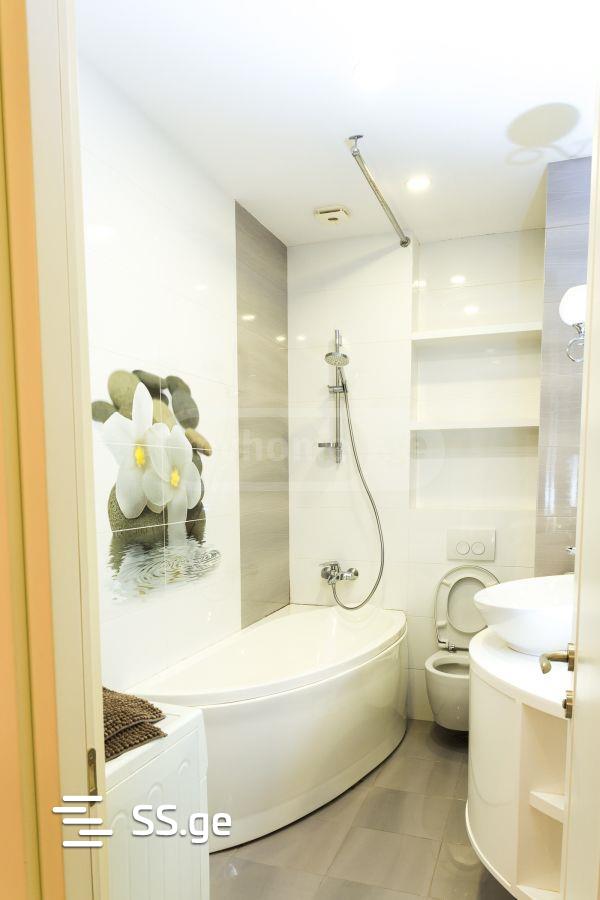 ქირავდება ახალი გარემონტებული, ავეჯით სრულად აღჭურვილი ბინა, ორი საძინებლით, ზამთრის ბაღით, დიდი აივნით და ავტოსადგომით (პირველ სართულზე). ბინის აივანი უყურებს რეკრეაციულ ზონას. ლიფტი უფასოა.