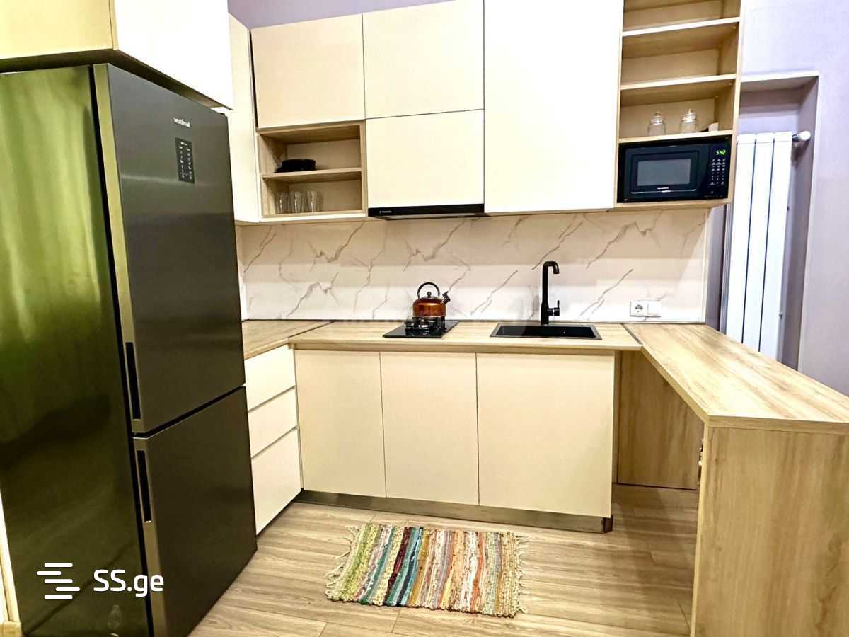 ბინა შედგება 3 საძინებლის, მისაღები ოთახის, სრულად აღჭურვილი სამზარეულოსა და 2 სველი წერტილისგან.