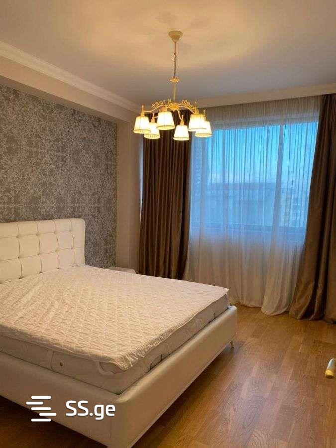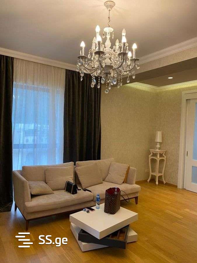 ჭავჭავაძის 75, მე9 სართული (რუსეთის საელჩოს გვერდზე, აქსისის კორპუსში). საერთო ფართი 132 კვ2, აქვს აივანი. ნათელი 4 ოთახიანი ბინა, 2 საძინებელი, დიდი მისაღები ოთახი, ცალკე სამზარეულო, კაბინეტი, რომლიც საჭიროების შემთხვევაში საძინებლად გამოდგება და 2 სველი წერტილი. იტალიური სამზარეულო, ავეჯი, აღჭურვილია ყველანაირი ტექნიკით. ბინაში ყველგან არის კონდიციონერების სისტემა. მისღებიდან და აივნის მხრიდან ხედი იშლება კუს ტბისკენ. აქვს მიწისქვეშა ავტოფარეხი. ფასი 1500 USD დეპოზიტი 500 USD