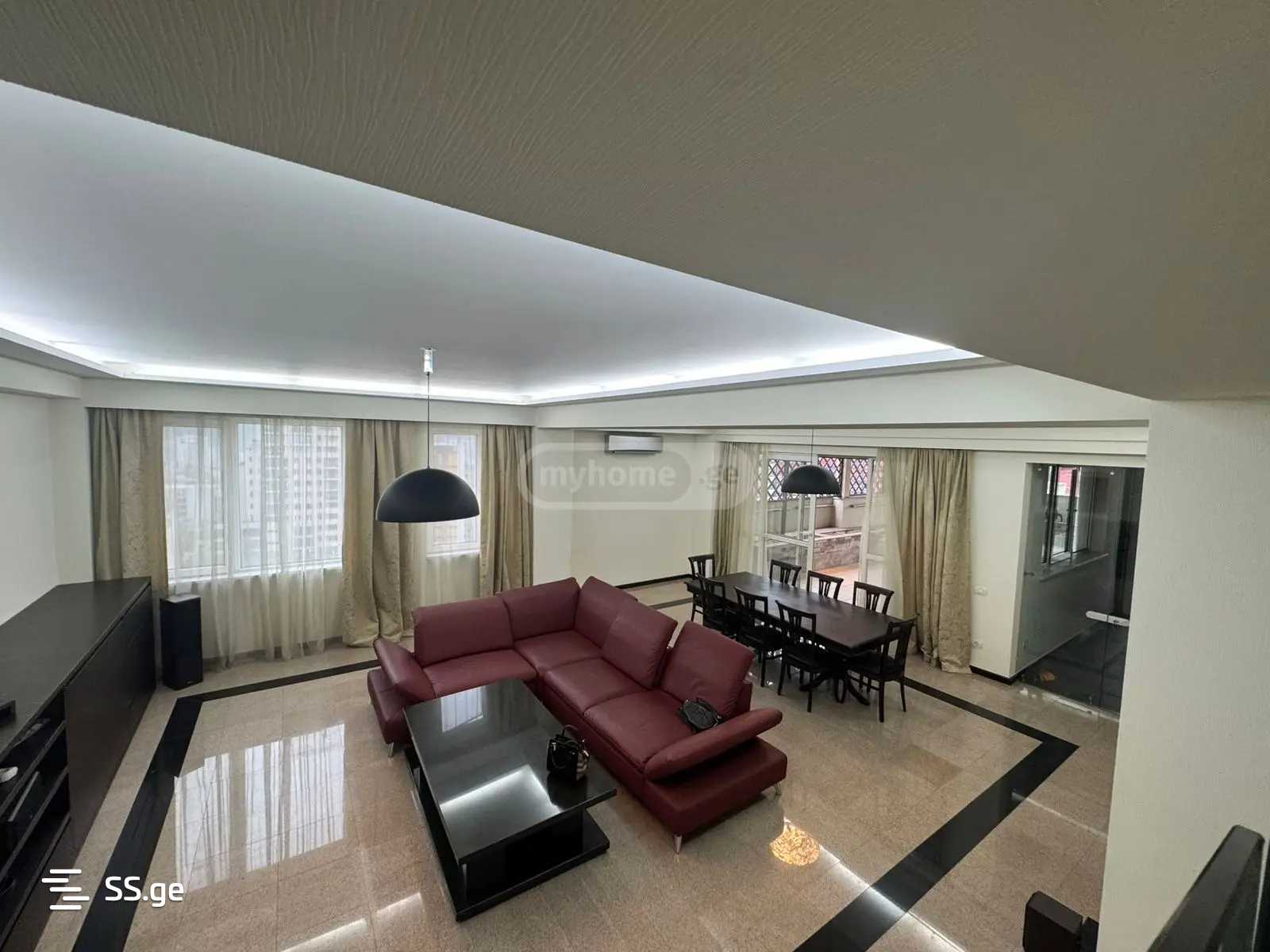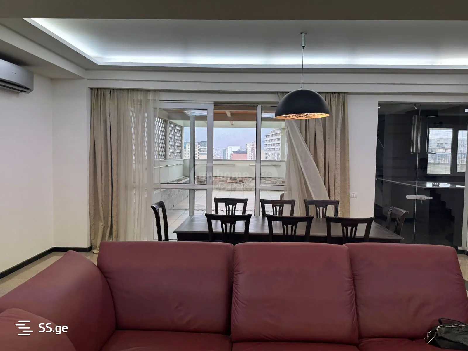 ძველ თბილისში, ლეხ კაჩინსკის ქუჩაზე, 300 არაგველის მეტროსთან ახლოს, ქირავდება 2400$-ად ახალაშენებულ კორპუსში (11-12 სართული) მდებარე 425 კვ.მ. ფართის დუპლექსის ტიპის 6-ოთახიანი პენტჰაუსი. საცხოვრებელი (300 კვ.მ.) მოიცავს 3 მასტერ-საძინებელს ინდივიდუალური სველი წერტილებითა და საგარდერობოთი, 2 კაბინეტს, იზოლირებულ სამზარეულოს AEG-ის ჩაშენებული ტექნიკით და 50 კვ.მ. მისაღებს; ბინას აქვს ავტონომიური გათბობა კონდიცირება და 120 კვ.მ. ვერანდა გარე სამზარეულოთი, ბუხრითა და ულამაზესი ხედებით თბილისზე. ნებადართულია შინაური ცხოველი (ძაღლი 8 კგ-მდე). ბინას მოყვება ორი ავტოფარეხი(მიწისქვეშა ორი პარკინგი)ორი თვის წინასწარი გადახდით