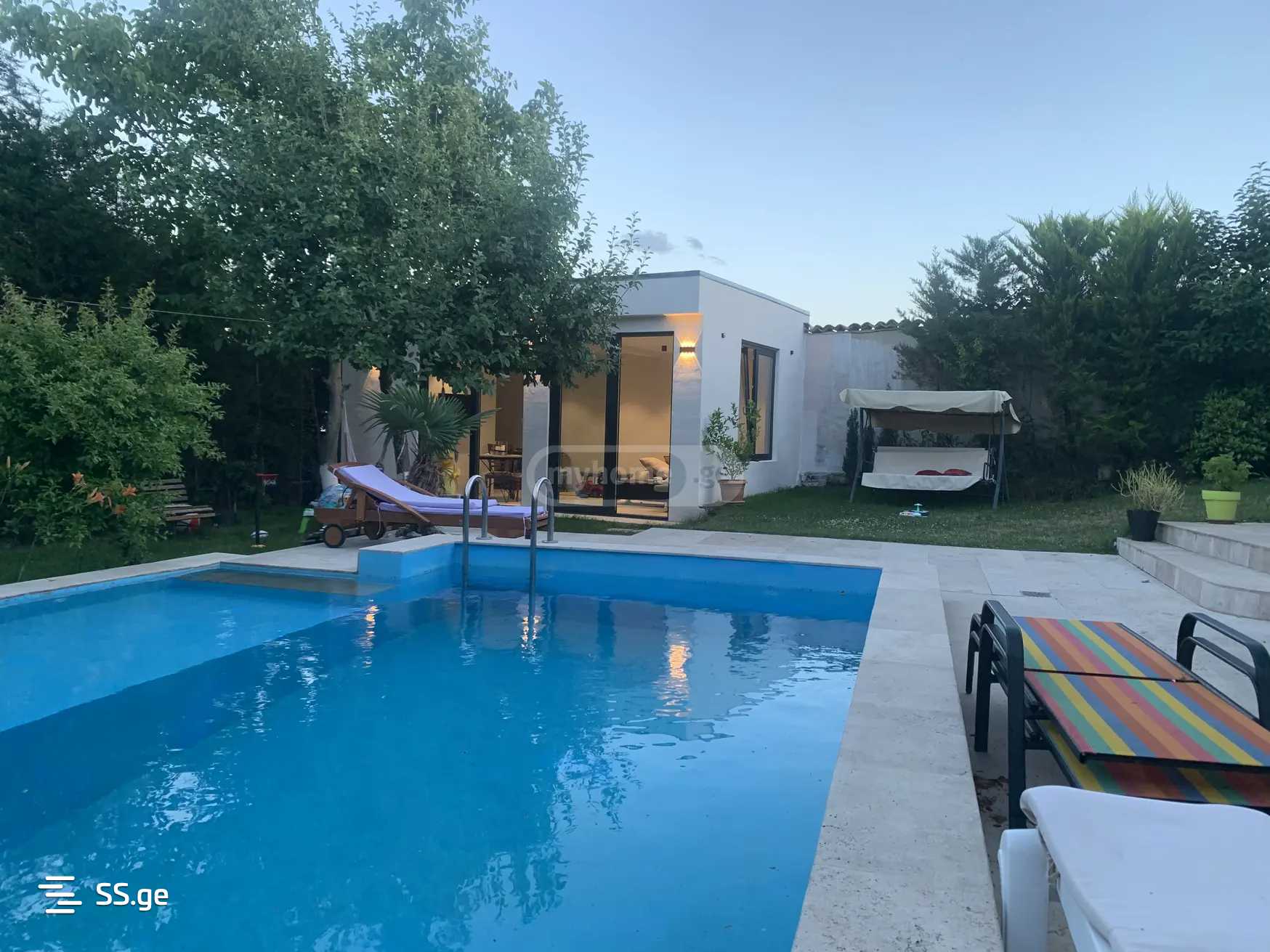 ქირავდება აგარაკი წავკიში თბილისის ხედზე დიდი აუზით ეზო თავის ხეხილით წყნარ და მყუდრო ადგილას ხევის პირას სახშია ყველა ტექნიკა და ავეჯი ასევე ეზოში