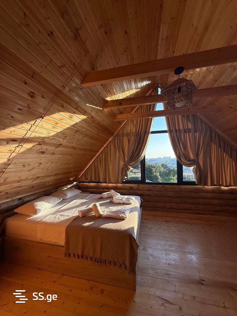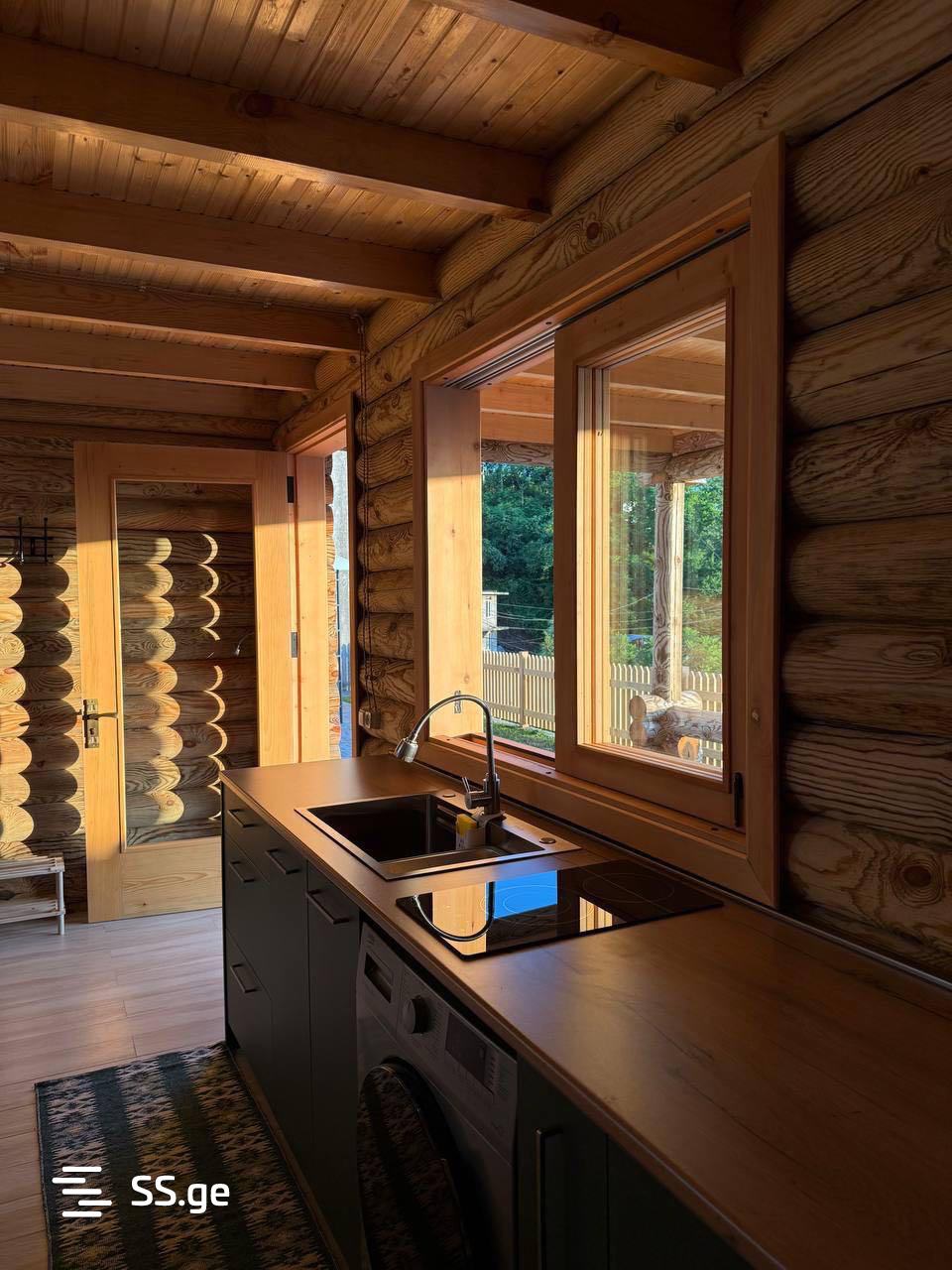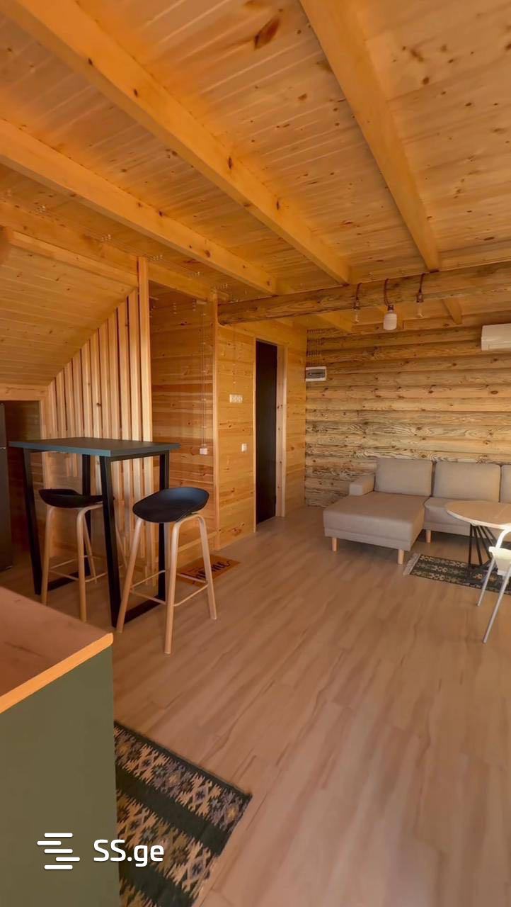 • სახლი აშენებულია ნატურალური ხის მასალისგან