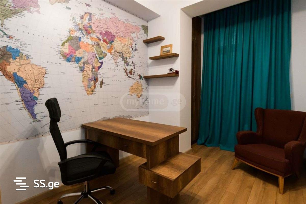 ქირავდება ბინა ახალ აშენებულ სახლში, ახალი გარემონტებული, უცხოვრებელი, აღჭურვილია თანამედროვე ავეჯით და ტექნიკით. ბინას აქვს დიდი მისაღები ოთახი, სამზარეულო სასადილო სივრცით, 2 საძინებელი, 1 კაბინეტი ( რომელიც საძინებლად შეიძლება გამოდგეს. 2 სველი წერტილი, ერთი საშხაპეთი, ერთი ჩასაწოლი აბაზანით, ასევე აქვს სათავსო ოთახი აღჭურვილი კარადებით. ბინას აქვს აივნები გრძელი აივნები. ეზოში აქვს მანქანის საპარკინგე ადგილი. ასევე ბინას აქვს საერთო სარგებლობის ვერანდა აღჭურვილი შესაბამისი ბუხრით და სხვა საჭირო ინვენტარით. ბინა არის დაცული, ეზოს აქვს შლაგბაუმი. ბინა არის მყუდრო, აივბნები ქვს ეზოს მხრიდან და არის დაცული ქალაქის ხმაურისგან და მტვერისგან. ბინა ქირავდება გრძელვადიანი პირობებით.
