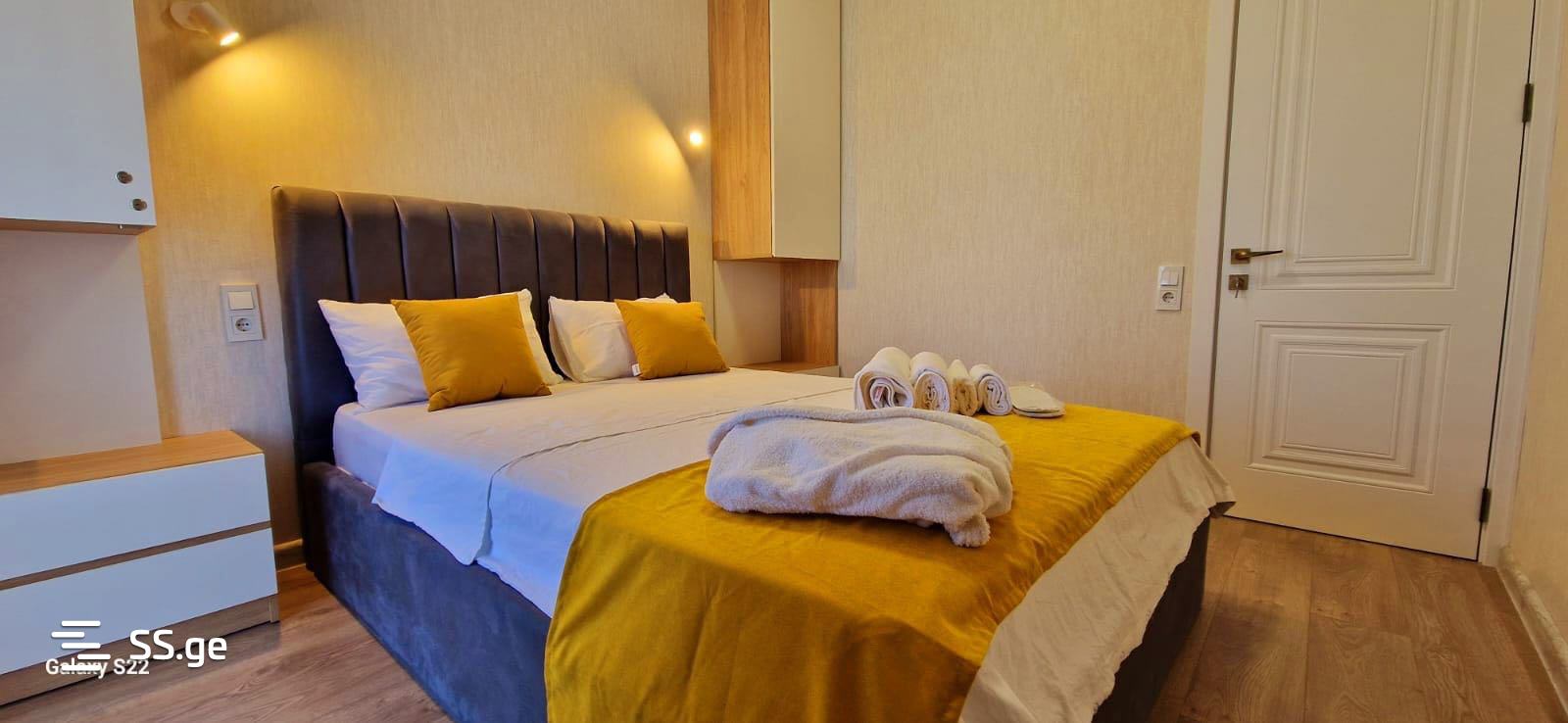 ქირავდება დღიურად ბინა ახალაშენებულ კორპუსში. ბინაში დაგხვდებათ ყველა საჭირო ინვენტარი: პირსახოცები, ხალათები, ერთჯერადი ჩუსტები, თეთრეული, ჰიგიენური საშუალებები (შამპუნი, თხევადი საპონი, კბილის ჯაგრისი და პასტა, ჰიგიენური ნაკრები, ტვ. ქაღალდი), ჭურჭელი, წყალი, ჩაი/ყავა. ბინაში არის მაცივარი, ელექტრო ჩაიდანი, მიკროტალღური ღუმელი, სარეცხი მანქანა საშრობით, ფენი, ტელევიზორი და WIFI. თავს იგრძნობთ მყუდროდ და კომფორტულად. ფასი 50 ლარიდან (დამოკიდებულია ჯავშნის ხანგრძლივობაზე).