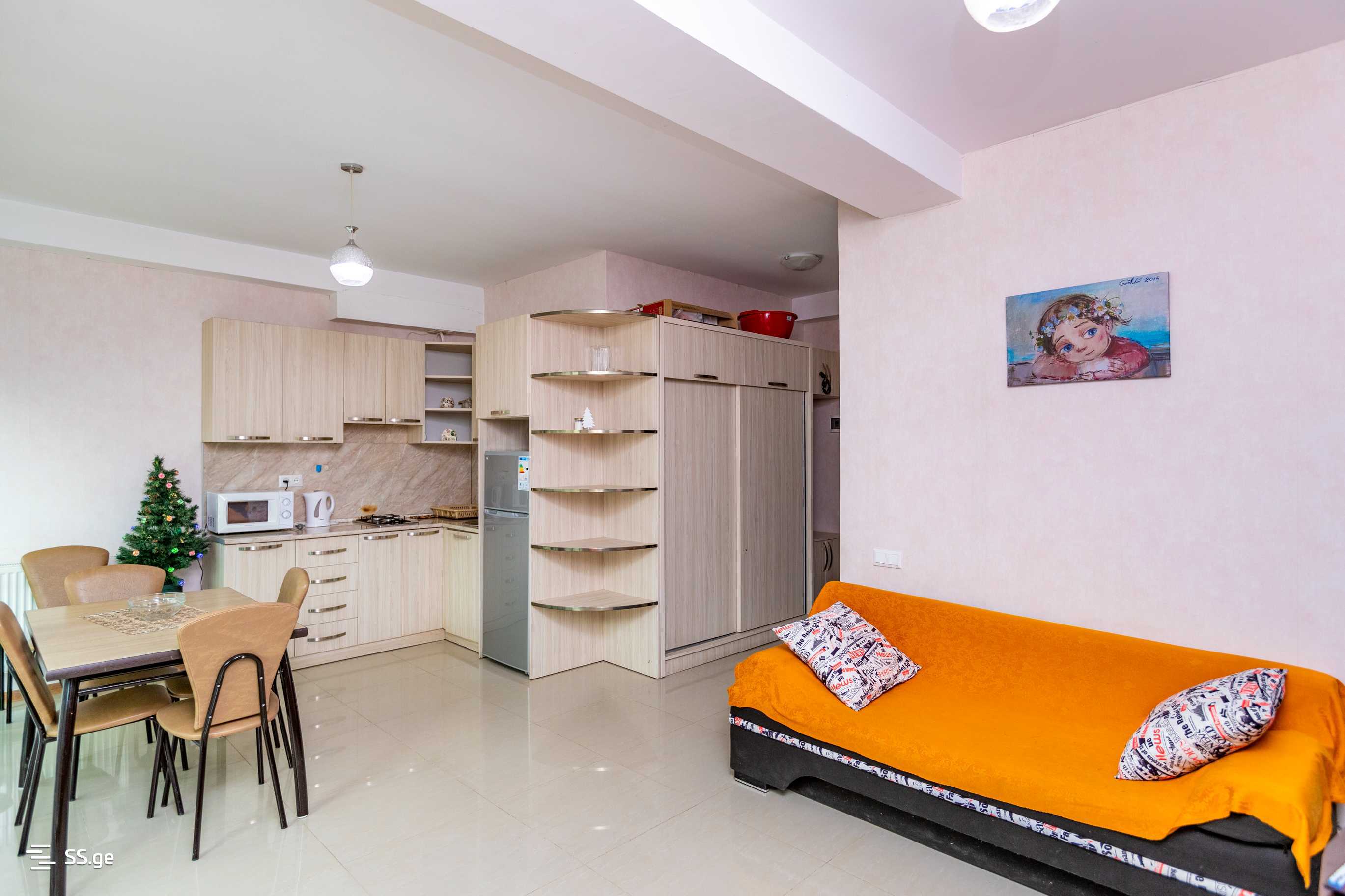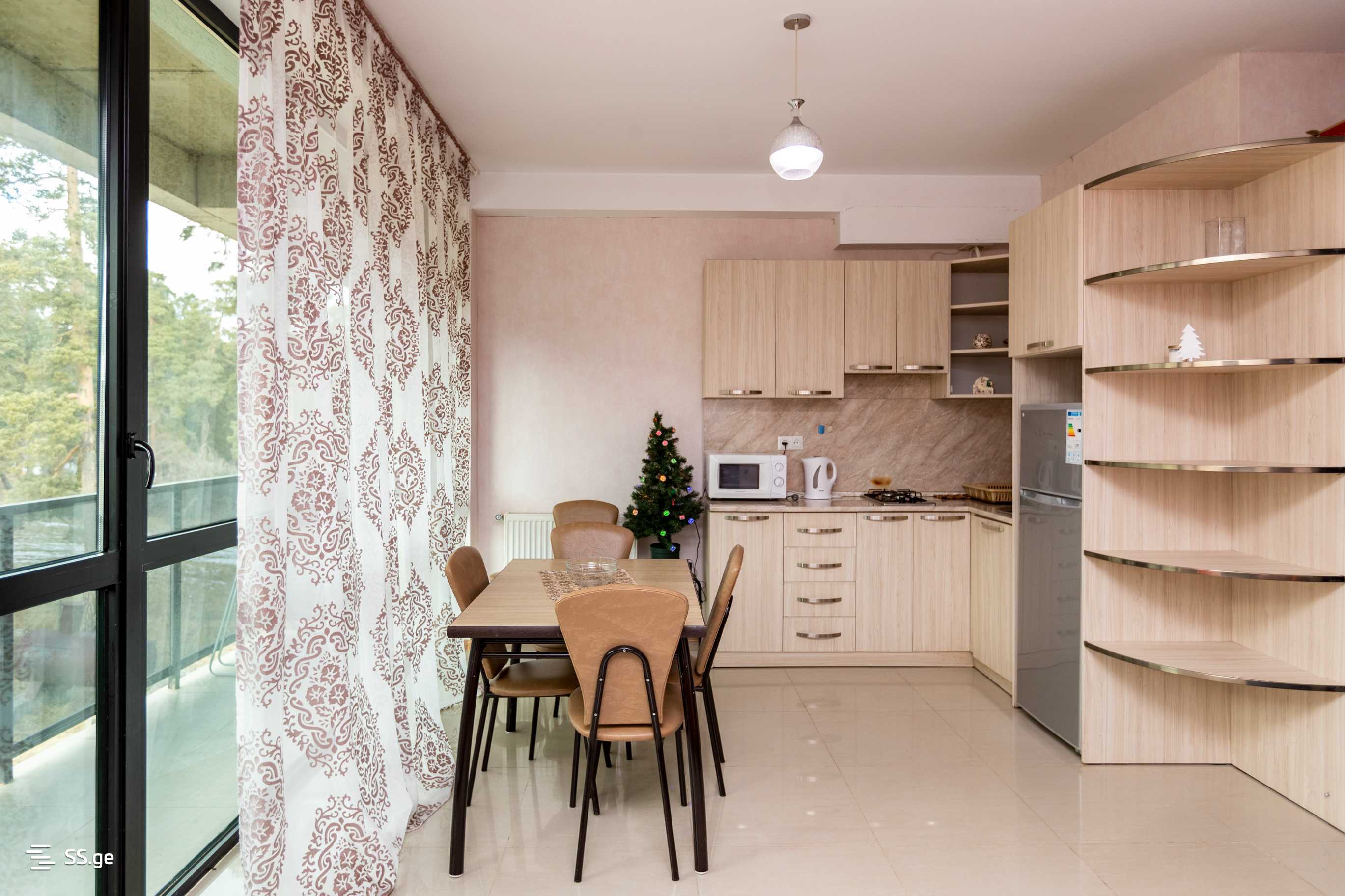 ბინა მდებარეობს ბობლაინში, აღმაშენებლის ქუჩაზე, ბაკურიანის ცენტრთან ძალიან ახლოს, ცენტრალური პარკის ზედა მხარეს, უკავშირდება ცენტრალურ პარკს უკანა მხრიდან. ბინაში თავისუფლეად განთავსდება 5 ზრდასრული, და შესაძლებელია ასევე გასაშლელი დივნის გაშლაც, ანუ ჯამში 7 ადამიანი. ბინაში არის ყველაფერი რაც საჭიროა მოკლე და ხანგრიძლივი ვადით დასარჩენად (ჭურჭელი, თეთრეული, ინტერნეტი, საკაბელო ტელევიზია, სარეცხი მანქანა, უთო და აშ). ხანგრძლივი დარჩენის შემთხვევაში შესაძლებელია ფასდაკლებაც. ბინას აქვს ტყის ხედი, ამიტომაც არ შემოდის მანქანების ხმაური.