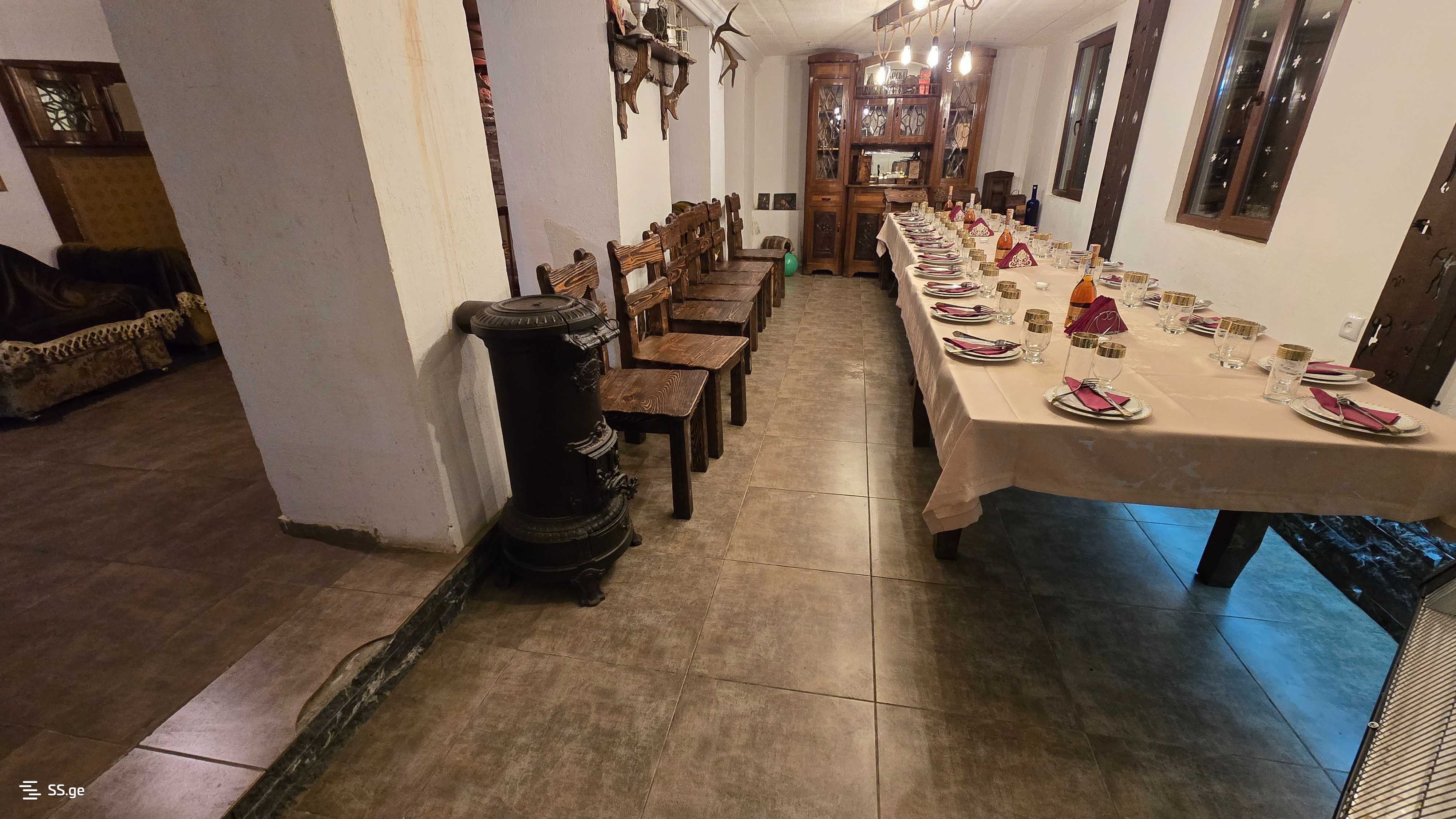 შიდა სივრცეში მაგიდა სკამები 25 ადამიანზეა