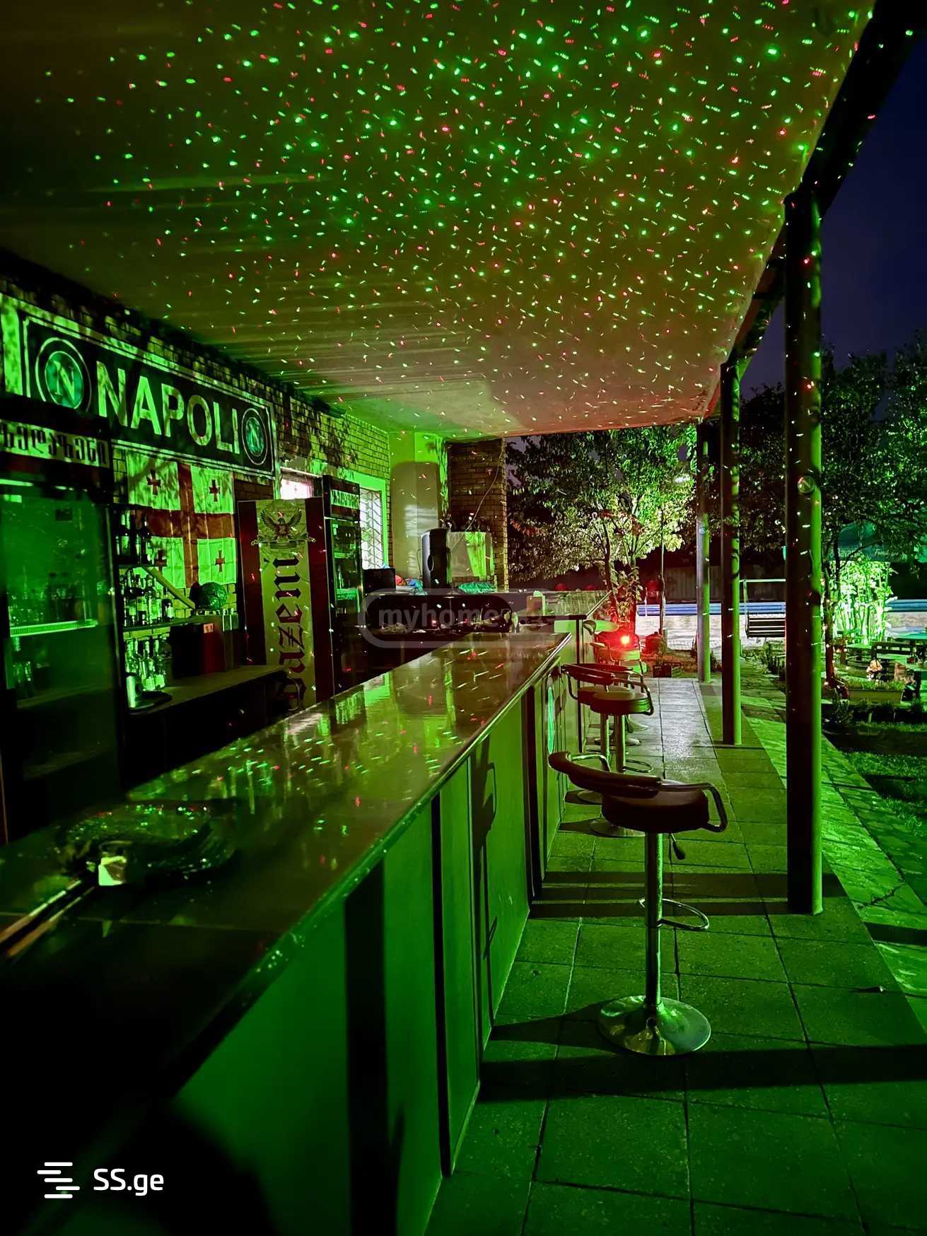 არის ყველანაირი ჭურჭელი, ,მაყალი და ასევე გარე და შიდა ბუხარი. შეგიძლიათ დაანთოთ კოცონი. ასევე არის ბარი სადაც შეძლებთ თავად მოამზადოთ კოკტეილები და სხვა. დინამიკები და მიკროფონი არის პროფესიონალი.
