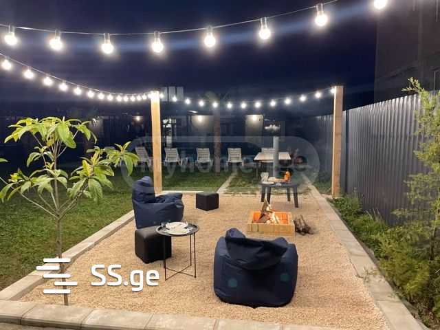 ქირავდება დღიურად ახალაშენებული ორსართულიანი სახლი აუზით.ეზოს ფართი 1500კვ.მ. ასევე ამ სივრცეში დგას 120 კვ.მ დამოუკიდებელი შენობა(მისაღები,კლუბი,ჰოლი)ევრო რემონტით,ცენტრალური გათბობით,ვერანდით(30 კვ.მ)პარკინგით და კარგი ხედით.ტექნიკა:სარეცხის მანქანა, ჭუეჭლის სარეცხი მანქანა, მძლავრი ,,დინამიკი,, ეზოს განათება გირლიანდები, დიდი და პატარა მაყალი (გრილი ) შამფურები. ადგილზე დაგხვდებათ ყველა საჭირო ინვენტარი ნებისმიერი სახის წვეულებისთვის: დაბადებისდღე, კოპრორატიული, ქორწილი და ა.შ ფასი იცვლება დღეებისა და რაოდენობის მიხედვით