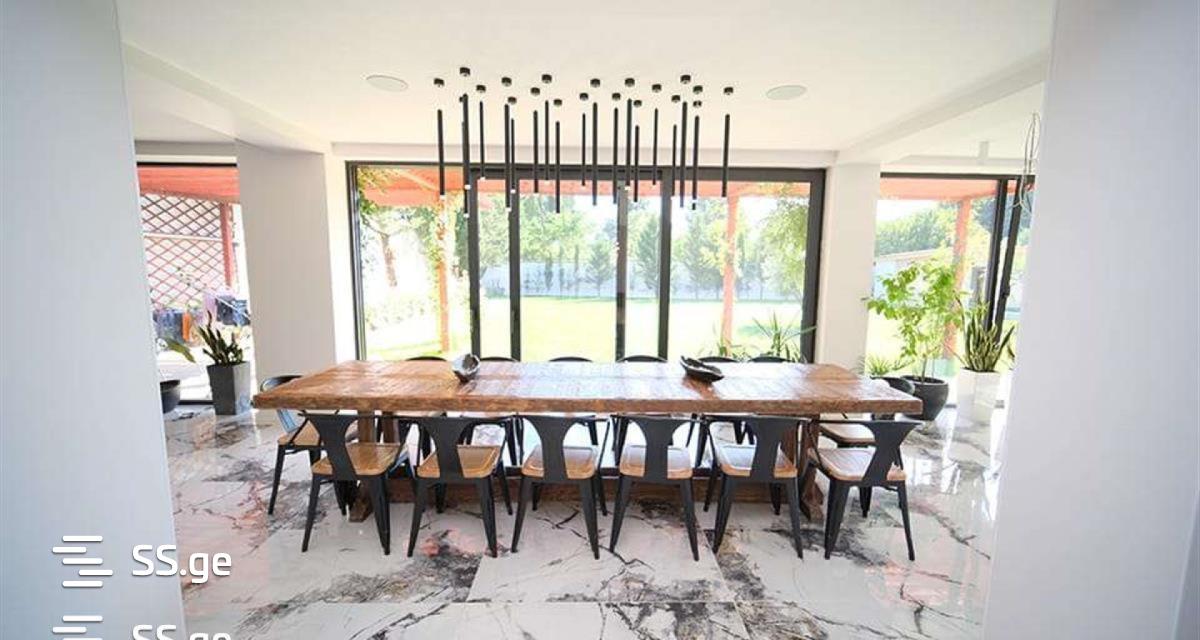 ქირავდება მინიმუმ 1 წლის ვადით ახალაშენებული, თანამედროვე სტილის სახლი დიღომი 7ში. აშენდა 2019 წელს, რემონტი დასრულდა 2021 წელს. საერთო ფართობი: 500 მ2. აქედან საცხოვრებელი ფართი შეადგენს: 350 მ2. რაც მოიცავს შემდეგ გეგმარებას: პირველ სართულზე: სამზარეულო სასადილო სივრცით ვიტრაჟული ტიპის. დიდი მისაღები და ბუხრის ოთახი. 2 სველი წერტილი და 1 ტექნიკური ოთახი. ჰოლი დიდი ჩაშენებული კარადებით. ღია ტერასა 25 მ2. მეორე სართულზე: დიდი მისაღები ოთახი. 4 საძინებელი აქედან 1 მასტერბედრუმი გარდერობით. დანარჩენი 3 საძინებელი ყველა საკუთარი სველი წერტილებით. ფრანგული აივნებით. მესამე სართული მანსარდული ტიპის, მოწყობილია დიდი კაბინეტი, სატრენაჟორო ოთახი, თავისი სველი წერტილით. სახლში გაკეთებულია მაღალი ხარისხის რემონტი, თანამედროვე დიზაინში გადაწყვეტილი ფერთა გამა. არის ვიტრაჟული ტიპის, დამონტაჟებულია ალუმინის სლაიდ სისტემების ვიტრაჟები. ვიდეოკამერები სრულ პერიმეტრზე. ეზოს საერთო ფართობი: 1200 კ.მდე. ბლოკის გალავნით შემოღობილი. პულტირებული ჭიშკრით. გამწვანება გაკეთებული თავისი ავტომატური სარწყავი სის