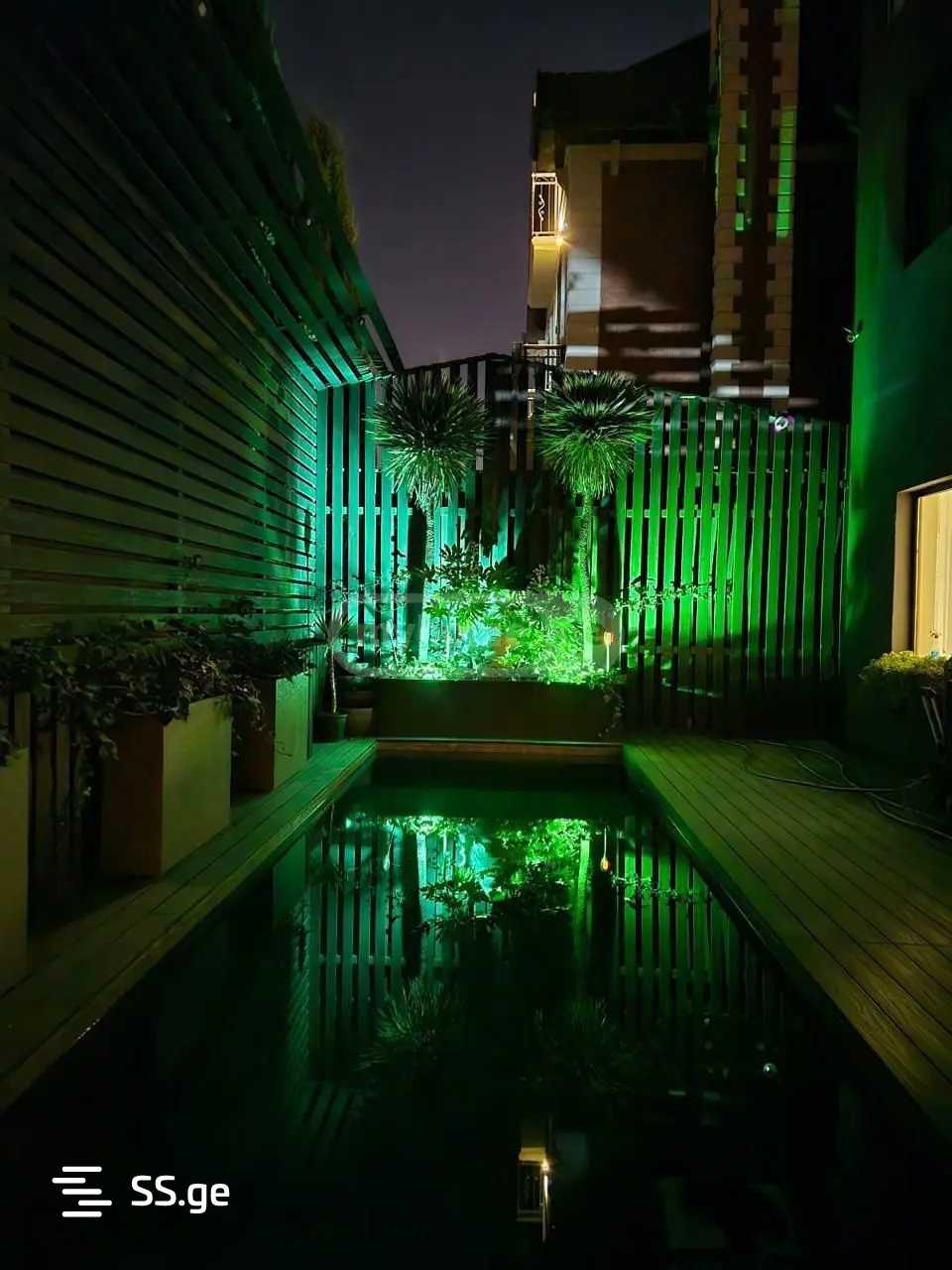 • სახლი გაწყობილია ჩაშენებული ტექნიკითა და დახვეწილი დეკორით