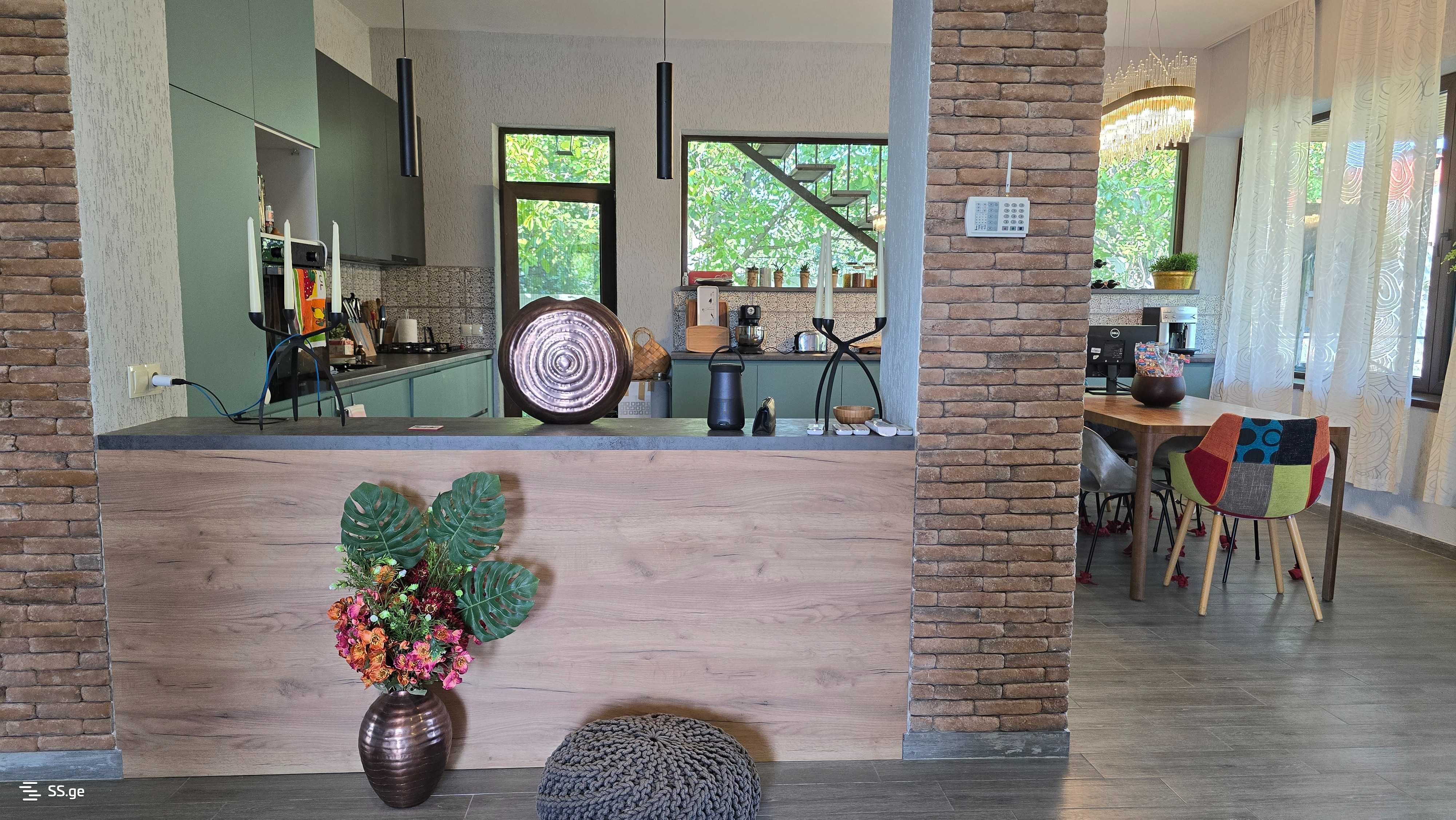 საცხოვრებელი ფართი: ღია ტიპის სამზარეულო, დიდი მისაღები ოთახი