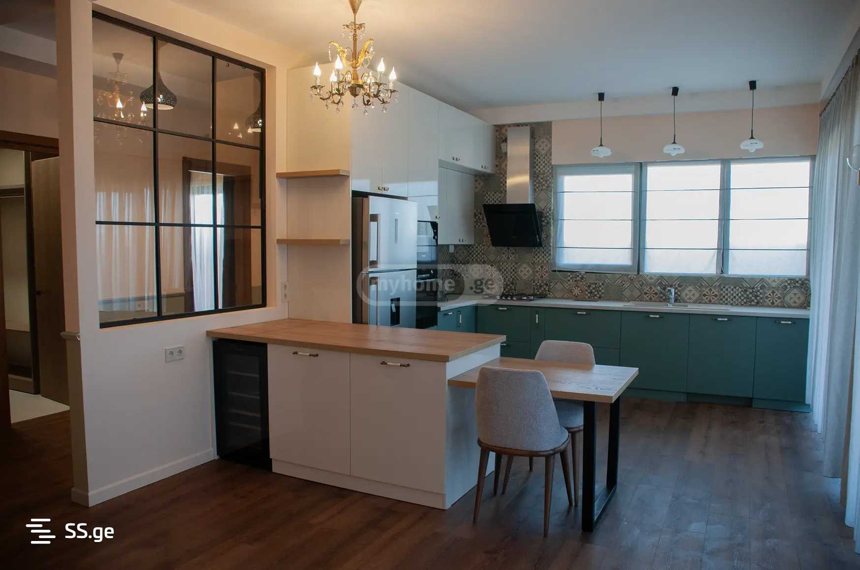 ქირავდება ახალი, უცხოვრებელი ეზოიანი სახლი თხინვალაში (ლისის ტბის მიმდებარედ, ზალდასტანიშვილისა და ბრიტანულ სკოლასთან ახლოს). თითოეული სართული 100 კვ. მეტრია. 1 სართულზე განთავსებულია ამერიკული ტიპის გახსნილი სამზარეულო, სასტუმრო ოთახი და 1 ოთახი (გამოდგება კაბინეტად, საძინებლად ან ბავშვების ოთახად). ასევე, 1 შხაპიანი აბაზანა-ტუალეტი და 1 პატარა ტუალეტი. დამხმარე ფართებია პროდუქტების საკუჭნაო, პალტოებისა და ფეხსაცმლის გარდერობი, სამრეცხაო (სარეცხი მანქანა და საშრობი)+ტექნიკური ოთახი, შესაბამისი უჯრებითა და თაროებით. აბაზანაში არის კიდევ დამატებითი სათავსო. სამზარეულო აღჭურვილია ავეჯითა და ყველა საჭირო ტექნიკით (გაზქურა გამწოვით, მიკროტალღური ღუმელი, ღუმელი, ჭურჭლის სარეცხი მანქანა, მაცივარი და ღვინის მაცივარი). სასტუმრო ოთახში დგას მაგიდა სკამებით, ტახტი სავარძლებით, ტელევიზორი თავისი მაგიდით და ანტიკვარული ბუფეტი. შემოსასვლელში დაგხვდებათ საკიდი კარადით. შესაბამისი ავეჯია აბაზანა-ტუალეტშიც. სამზარეულოდან აივანზე გადის 2 დიდი ვიტრაჟული კარი, რის გამოც სახლი მუდამ ნათელია, ხოლო გარეთ სასიამოვნო სასადილო, სამუშაო თუ მოსასვენებელი სივრცე მოეწყობა. მეორე სართულზე არის 1 მასტერ საძინებელი და 3 ოთახი. ავეჯი აქ არ დგას. მოქირავნე შეძლებს სურვილისამებრ და საკუთარი დანიშნულების შესაბამისად მოაწყოს თითოეული მათგანი. სამ ოთახს თავისი საგარდერობე ოთახი აქვს, ასევე თაროებითა და უჯრებით მოწყობილი. არის კიდევ ერთი მოზრდილი აბაზანა, სადაც ორი ნიჟარაა მოთავსებული. 3 ოთახი გადის აივანზე, ხოლო მეოთხე - უკანა ეზოში. მეორე სართულიდან კიბე ადის ბრტყელ სახურავზე, სადაც ბანია მოწყობილი, ლამაზი ხედები იშლება ოთხივე მხარეს და მუდამ უბერავს სასიამოვნო სიო. სახლი არის ფერადი, თბილი, ნათელი და ხალისიანი. გარემონტებულია ვინტაჟურ სტილში, ეკლექტური ელემენტებით. ყველა ოთახში არის ჭაღი და ფარდები. ორივე სართულზე არის იატაკქვეშა გათბობა. თითოეული კუთხე დაცულია კამერებითა და მოძრაობის დეტექტორებით. ეზოში შესასვლელად დამონტაჟებულია ელექტროჭიშკარი. ეზოს ფართობია 300 კვ.მ. ფერდობული ეზო სტრუქტურირებულია 3 ტერასად. პირველი დონიდან შევდივართ სახლში, აქვე გამოვდივართ სამზარეულოდან. მეორე, პატარა ტერასა სახლის გვერდითაა და აქედან ავდივართ უკანა ეზოში (სადაც მეორე სართულიდანაც გავდივართ). სახლის გვერდით დგას წყლის ტონიანი რეზერვუარი, რომელიც გამოიყენება წყლის დაწყვეტის შემთხვევაში. სახლი მდებარეობს გორის ძირში და უკან არაფერი უდგას, რის გამოც მეტად მყუდ