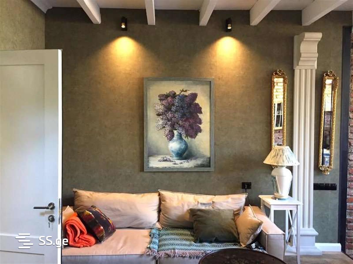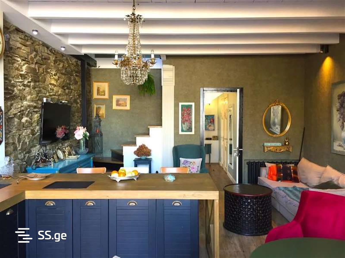 სახლის ინტერიერი გადაწყვეტილია ევროპულ სტილში, სამ სართულიანია, სასიამოვნო გარემოს ამშვენებს ეზოს გარეთ კეთილმოწყობილი ეზობაღით, ნათელია, ესაზღვრება მწვანე ფოთლოვანი ხეები, გარემო ეკოლოგიურად სუფთაა და გამოირჩევა სიმშვიდით, მოიცავს სამ საძინებელ ოთახს აქედან ერთს აქვს საკუთარი სვ.წერტილი და საგარდერობო. სასტუმრო ოთახი ორია, აქდან ერთს აქვს მცირე ზომის სამზარეულო კუთხე, ხოლო მეორეს დიდი. აქვს აივანი(ვერანდა) და ფარეხი