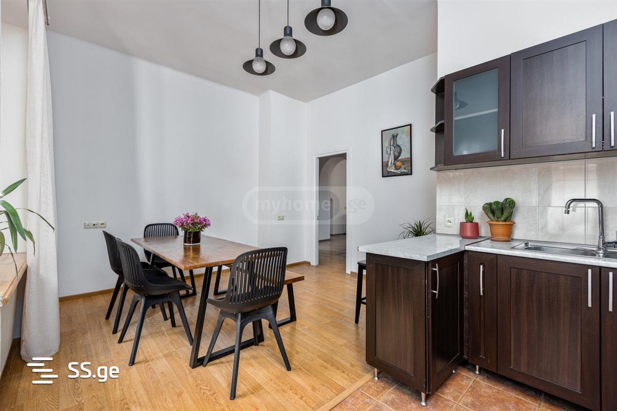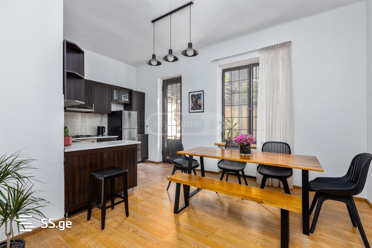 ქირავდება კერძო სახლის პირველი სართული. აქვს დამოუკიდებელი შესასვლელი. ბინა არის 100 მ2, აქვს საკუთარი ეზო 40 მ2. სახლი მდებარეობს ქალაქის ცენტრში, ლ.კავსაძის ქუჩაზე, მხატვრების ეზოში. ბინა არის მყუდრო, ნათელი, არასტანდარტული, მაღალი შჭერით, ბუხრით და კეთილმოწყობილი. შესაძლებელია გაქირავდეს როგორც საცხოვრებელი ბინა ასევე ოფისი. დაინტერესების შემთხვევაში დამიკავშირდით