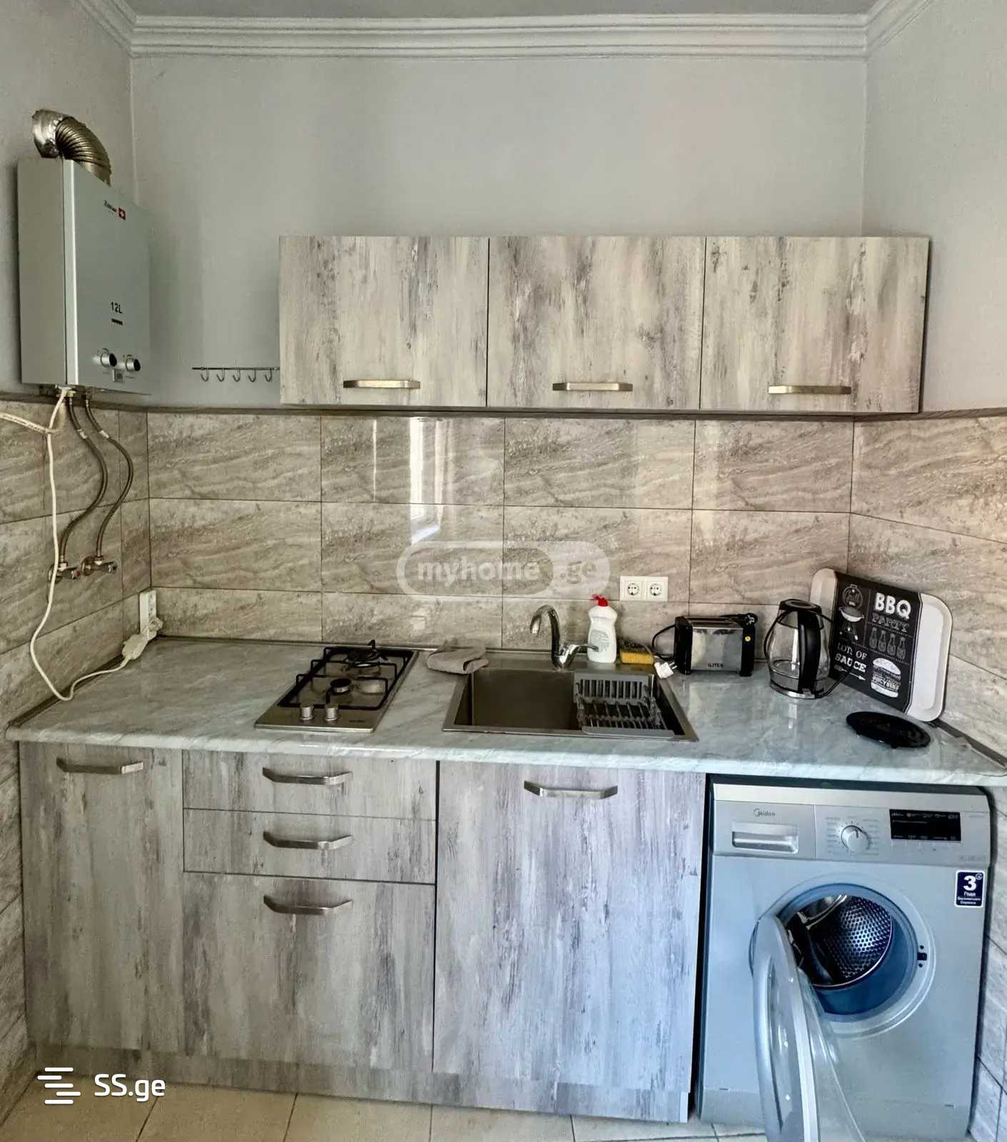 ქირავდება ახალი გარემონტებული ბინა კერძო სახლში პირველ სართულზე, ცენტრალური გათბობით ჩაშენებული სამზარეულოთი, იზოლირებული ორი საძინებლით.
