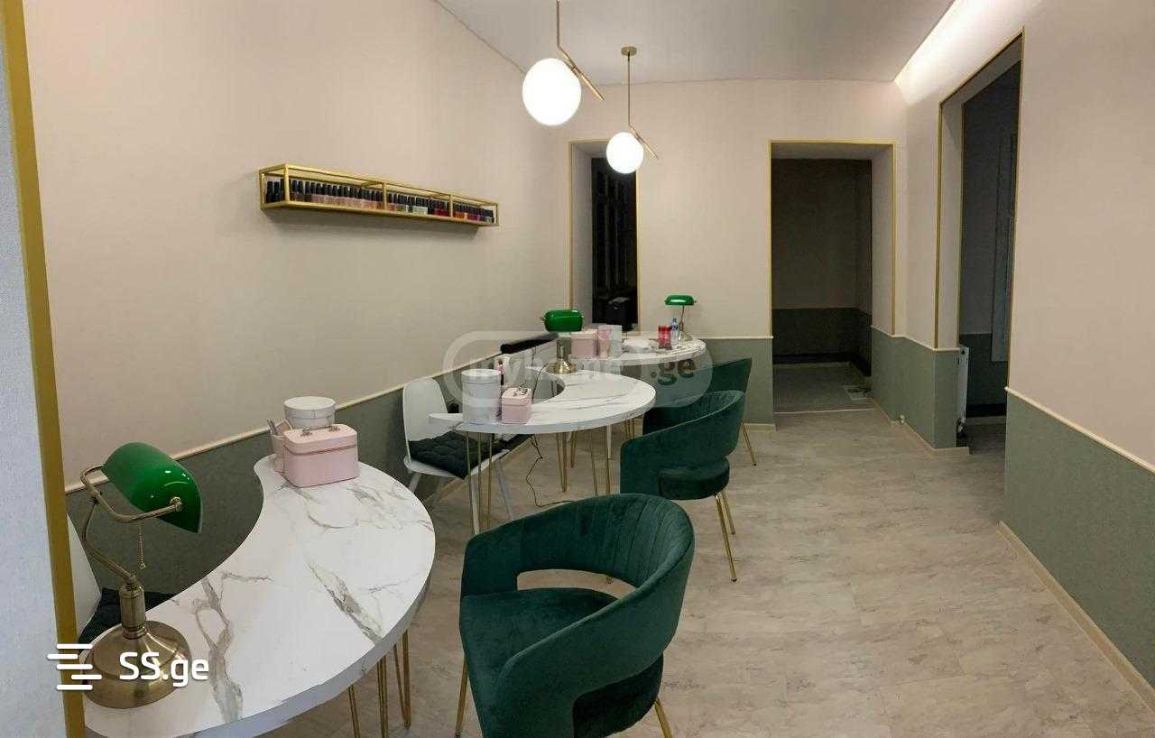 3 დამოუკიდებელი კაბინეტი, სტილისტის 6 სავარძელი, 3 მანიკური, 3 პედიკური, ბარი, მისაღები, სასტერილიზაციო ოთახი. ღირებულება 1500$