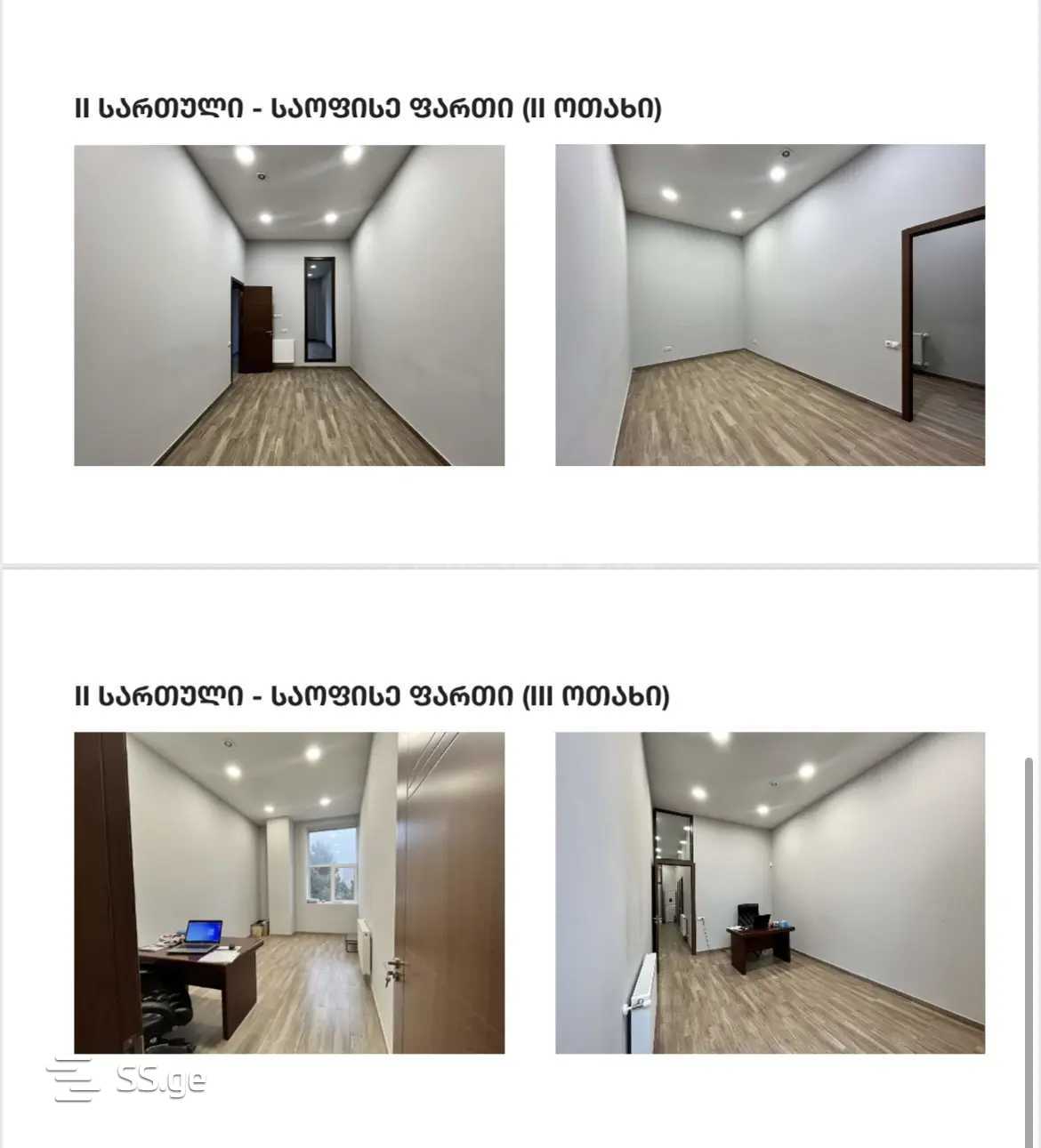 შენობაში არის ერთი დიდი სივრცე ვიტრაჟული ფანჯრებით და მაღალი ჭერით. ასევე არის 4 ოთახი, სამზარეულო, 3 სველი წერტილი და ლიფტი.