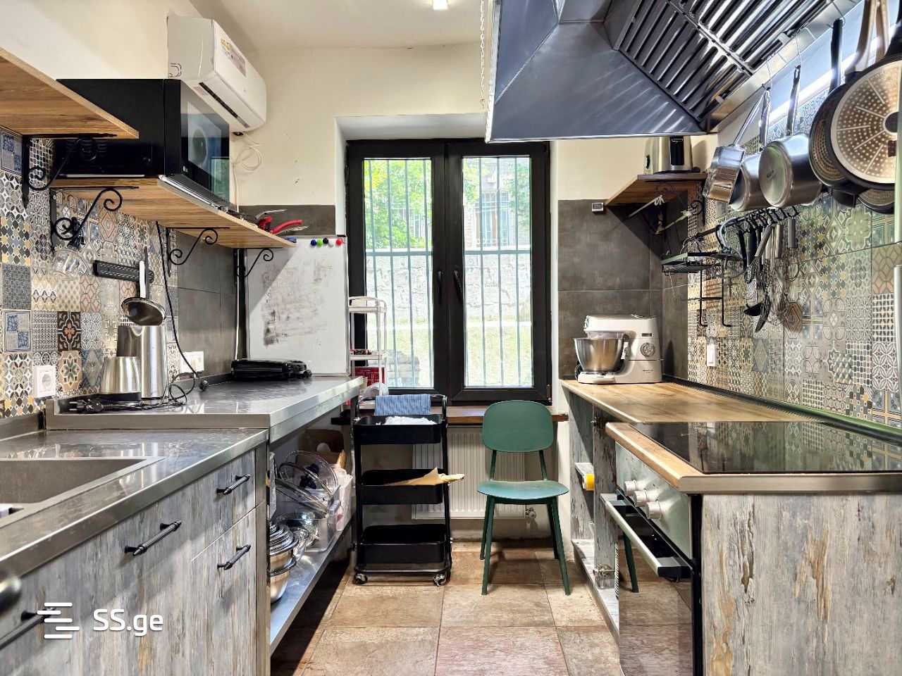სრულად აღჭურვილი და მოქმედი ფართი კაფე თუ რესტორნისთვის, სამზარეულო- სრულად დაკომპლექტებული, გაზქურა-ღუმელი გამწოვით, ჭურჭლის სარეცხი მანქანა, სავინტილაციო სისტემები.