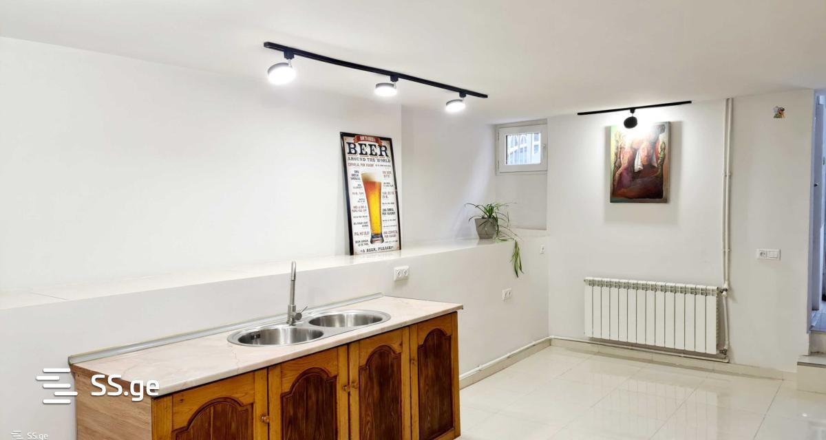 ფართი არის მაღალ 1 სართულს+ნახევრად სარდაფი. (80კვ+61კვ) სარდაფში ჭერი შედარებით დაბალია. უკანა სივრცე ორივე სართულს აქვს მეორადი განათებით (უფანჯრო) ორივე სართულს აქვს დამოუკიდებელი შესასვლელი ეზოდან ცალცალკე. ასევე შიდა კიბეც. გამოდგება ნებისმიერი საქმიანობისგვის. (ნოტარიუსი,ოფისი,სალონი,სამკერვალო,ონლაინ მაღაზიის საწყობად.მოკლედ ნებისმიერი საქმიანობისთვის