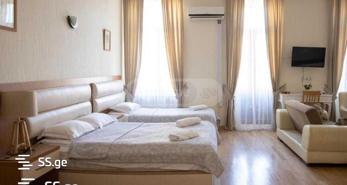 ქირავდება 6 აპარტამენტიანი სასტუმრო აღმაშენებლის გამზირზე. ყველა აპარტამენტს აქვს იზოლირებული აბაზანატუალეტი, აქედან 5ს აქვს სამზარეულოც. სასტუმრო არის ძალიან ნათელი, დიდი ოთახებით, ორი აივნით, რომლებიც გადაჰყურებს აღმაშენებლის გამზირს, ეზოს მხრიდან კი ოთახებს აქვს ხედი ფუნიკულიორზე.