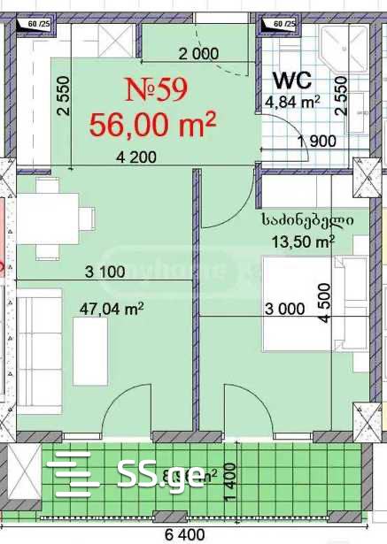 იყიდება 2 ოთახიანი ბინა ბაგებში