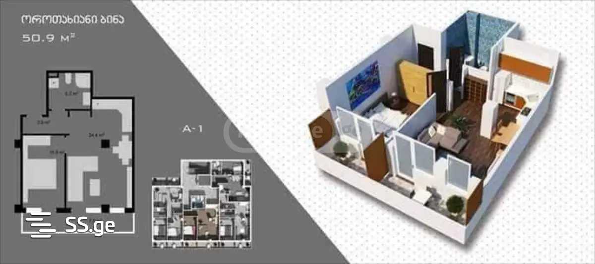 იყიდება 2 ოთახიანი ბინა დიდ დიღომში