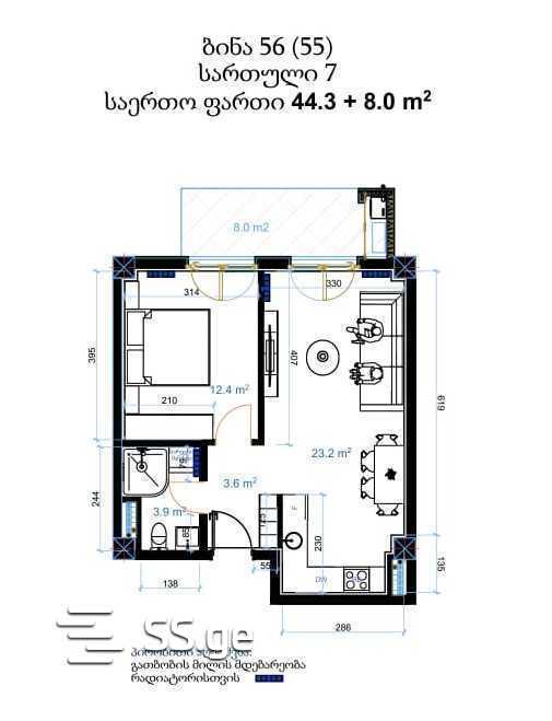 იყიდება 2 ოთახიანი ბინა საბურთალოზე