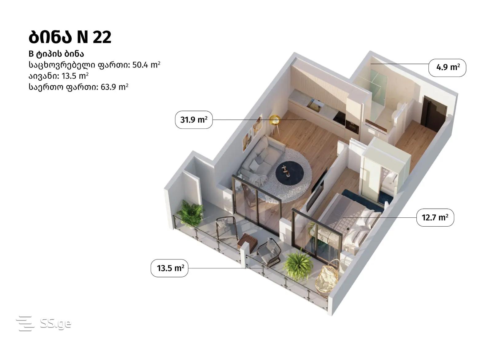 იყიდება 2 ოთახიანი ბინა საბურთალოზე