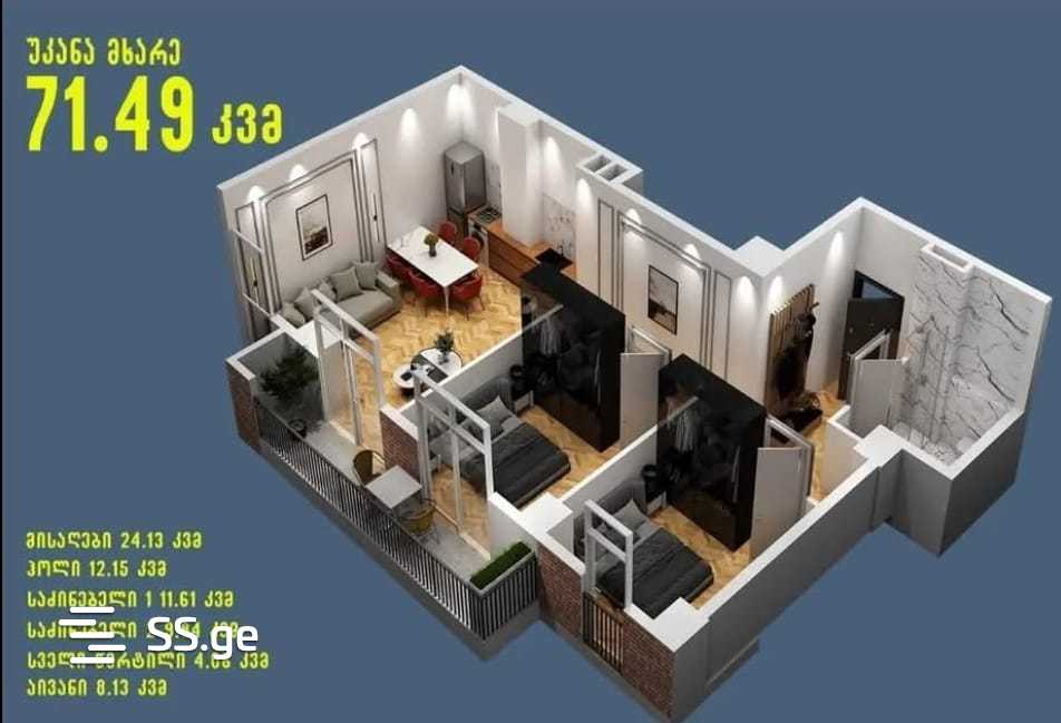 იყიდება 3 ოთახიანი ბინა გლდანში