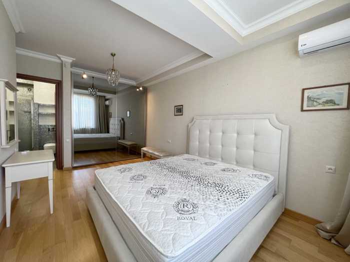 An apartment is for sale in a newly built, non-standard project in one of the city's prestigious neighborhoods. The apartment is located on the top floor of a 10-story building and features bright and spacious living areas. The total area is 147 sq.m., which provides a comfortable and free environment. The apartment has 3 rooms, including 2 bedrooms and a kitchen with an area of 14 sq.m. Two large balconies create additional space for relaxation and enjoying the city views. The new environment and modern layout are ideal for a calm and high-quality life.