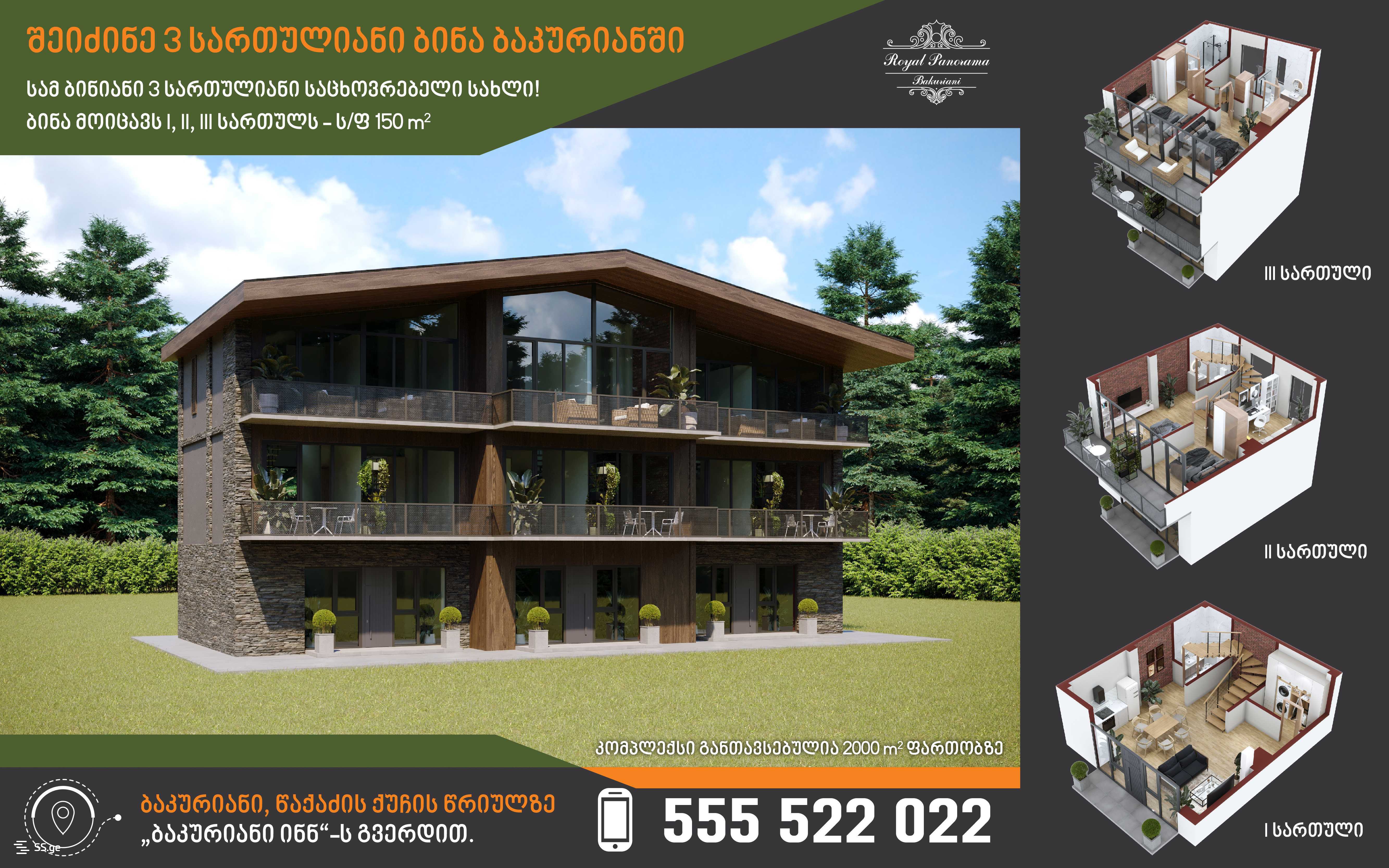 იყიდება 4 ოთახიანი ბინა ბაკურიანში