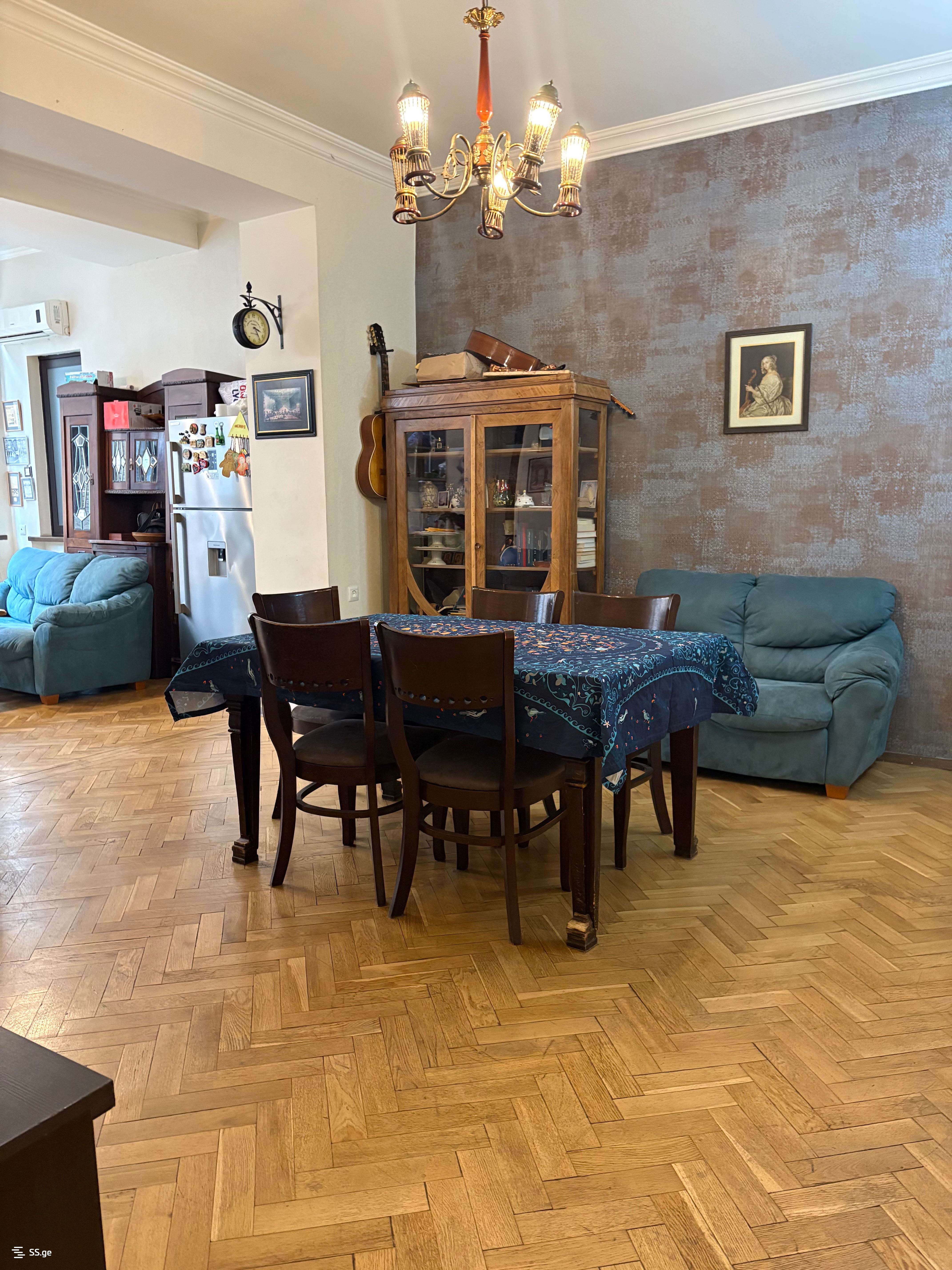 A four-room apartment of a non-standard project is for sale in an old-built, tuff, one-hallway house on Shio Mgvimeli Street in the city center of Vera on "Fikris Gora". 3 separate bedrooms. 1 bathroom, large living room and studio kitchen. The apartment is high-ceilinged, spacious and very cozy. The house has a balcony that goes to the side of the yard. There is a parking lot in the yard. high belletage