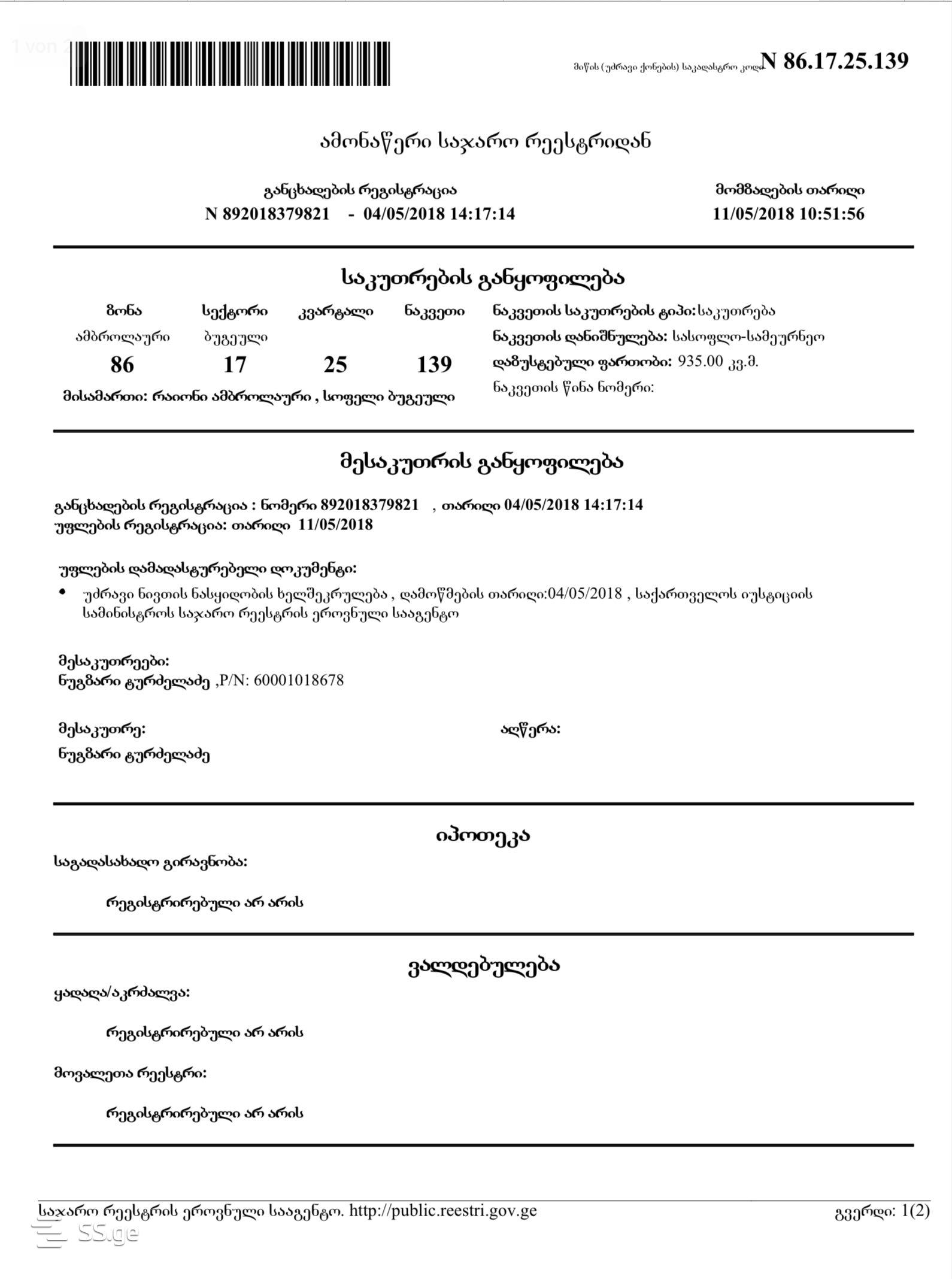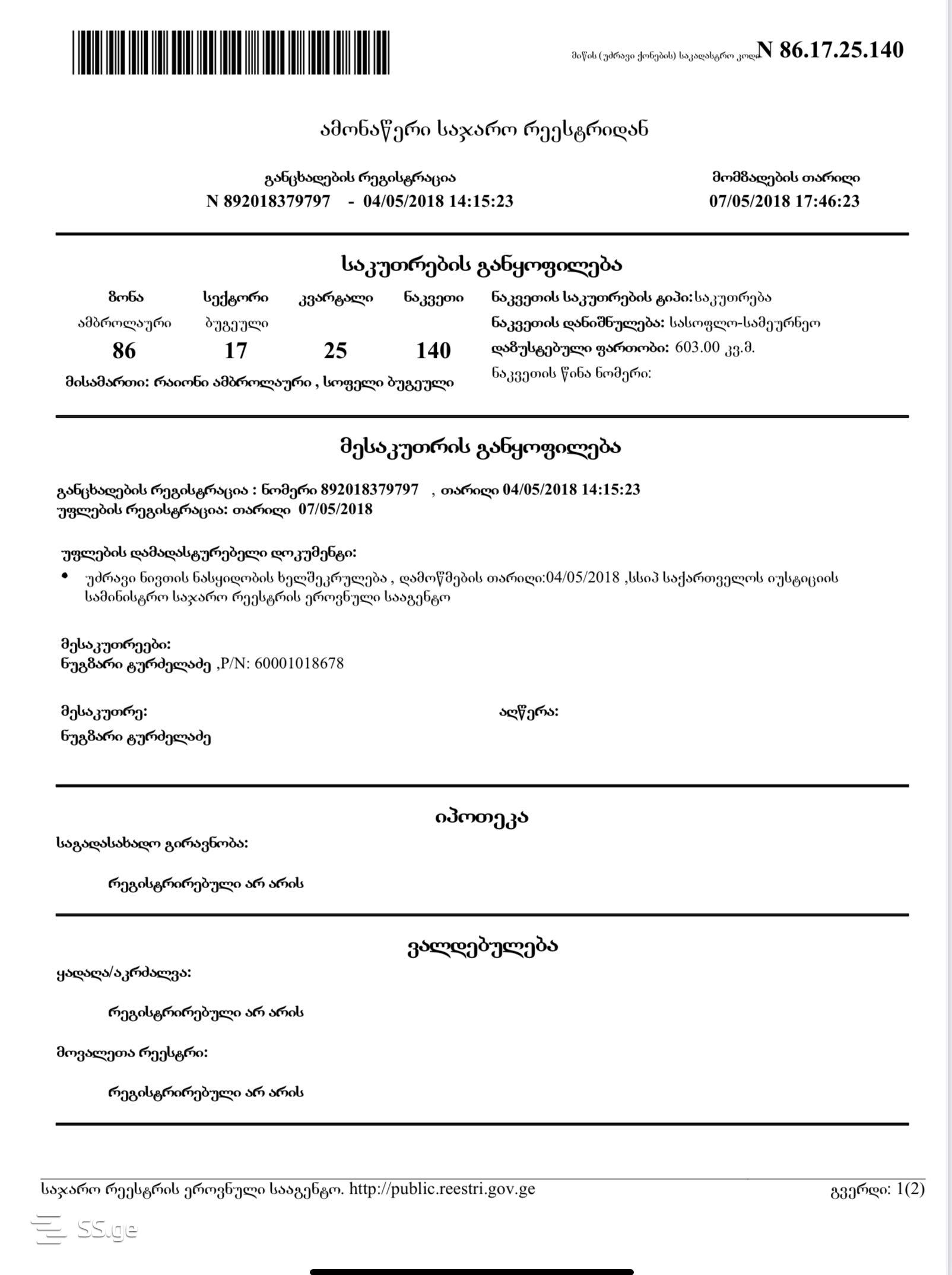 იყიდება მიწის ნაკვეთი ბუგეულში