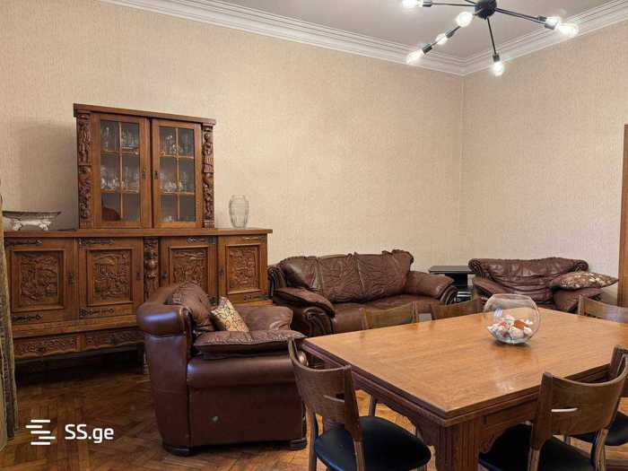 ქირავდება მაღალჭერიანი, გამჭოლი ბინა, თანამედროვე ავეჯით და ტექნიკით, ორი სველი წერტილით(აბაზანა და საშხაპე), დაგებულია პარკეტი. სამზარეულო და სასადილო ოთახს აქვს დიდ აივანზე გასასვლელი. ორი საძინებელი და კაბინეტი, რომელში არის შესაძლებელია საძინებლის მოწყობა. ბინა მდებარეობს მშვიდ და მყუდრო ადგილას. ახლოს არის ყველა საჭირო ობიექტი