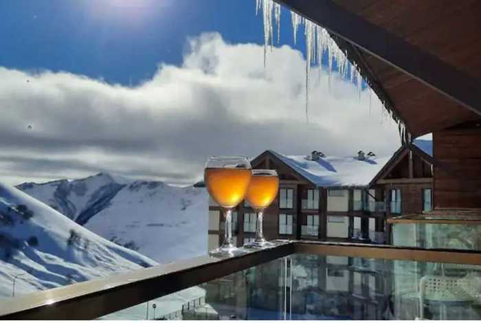სასწრაფოდ- იყიდება სტუდიოს ტიპის ბინა გუდაურში, კლუბ 2100ის კორპუსში. გარემონტებული და ყველა საჭირო ინვენტარით. კორპუსს აქვს გამავალი სასრიალო გზა (SKI OUT) პირველი საბაგიროს ტრასაზე