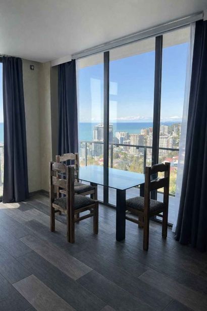 1+1 ბინა ზღვის პირას, 65 მ², ზღვისა და მთის ხედებით, გათბობით აღჭურვილი იატაკი, ჭკვიანი სახლი, პროექტორი, სრულად მზად საცხოვრებლად, ელექტრო ველოსიპედი საჩუქრად. ID: 1473620 (tan)