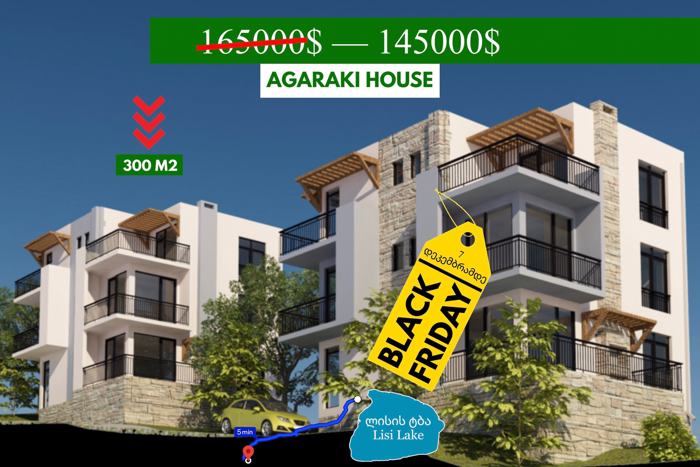 📣 ფასი რომელიც არ განმეორდება! 📣 მხოლოდ 7 დეკემბრამდე ისარგებლე შავი პარასკევის სალიკვიდაციო 20000 $-იანი ფასდაკლებით და 165000 $-ის მაგივრად 145000 $-ად შეიძინე 3 სართულიანი კერძო სახლი საკუთარი ეზოთი, ლისის ტბიდან 5 წუთის სავალ გზაზე ბინის ფასად. Agaraki House ლისის ტბიდან 5 წუთში⏱️ აგარაკში, ბანკის შეფასებაზე იაფად, იყიდება 3 სართულიანი კერძო სახლი ეზოთი 🏡 📍 აგარაკი – ადგილი სადაც ბუნება, სიმშვიდე და ქალაქი ჰარმონიულად თანაარსებობენ 🌳 🧱 ეფექტური ნაგებობა და პროექტი 📐 🏗 3 სართული – 300 მ² 🌳 ეზო – 180 მ² ⚒ შავი კარკასი – ენერგოეფექტური კარ-ფანჯარა, აბონირებული წყალი და ელექტრო ენერგია. ტერიტორიას ემსახურება საზოგადოებრივი ტრანსპორტი ✅ 📉 ფასდაკლება: 165000$ → 145000$. ბანკის შეფასება სახლზე - 160000$. შავი პარაკევის სააქციო შეთავაზება იმოქმედებს მხოლოდ 7 დეკემბრამდე 🚩