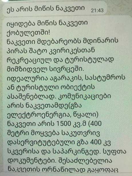 მიწის ფართი ქობულეთში ფ1900კვ ფ1კვ 85$ ფ161,500$